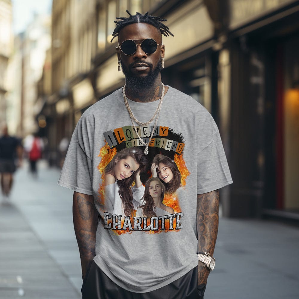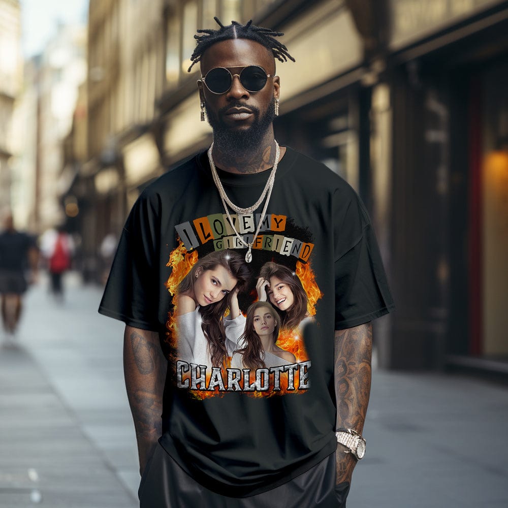 T-shirt Vintage Personnalisé J'aime Ma Chemise De Petite Amie Chemise De Nom Personnalisée Avec Photo
