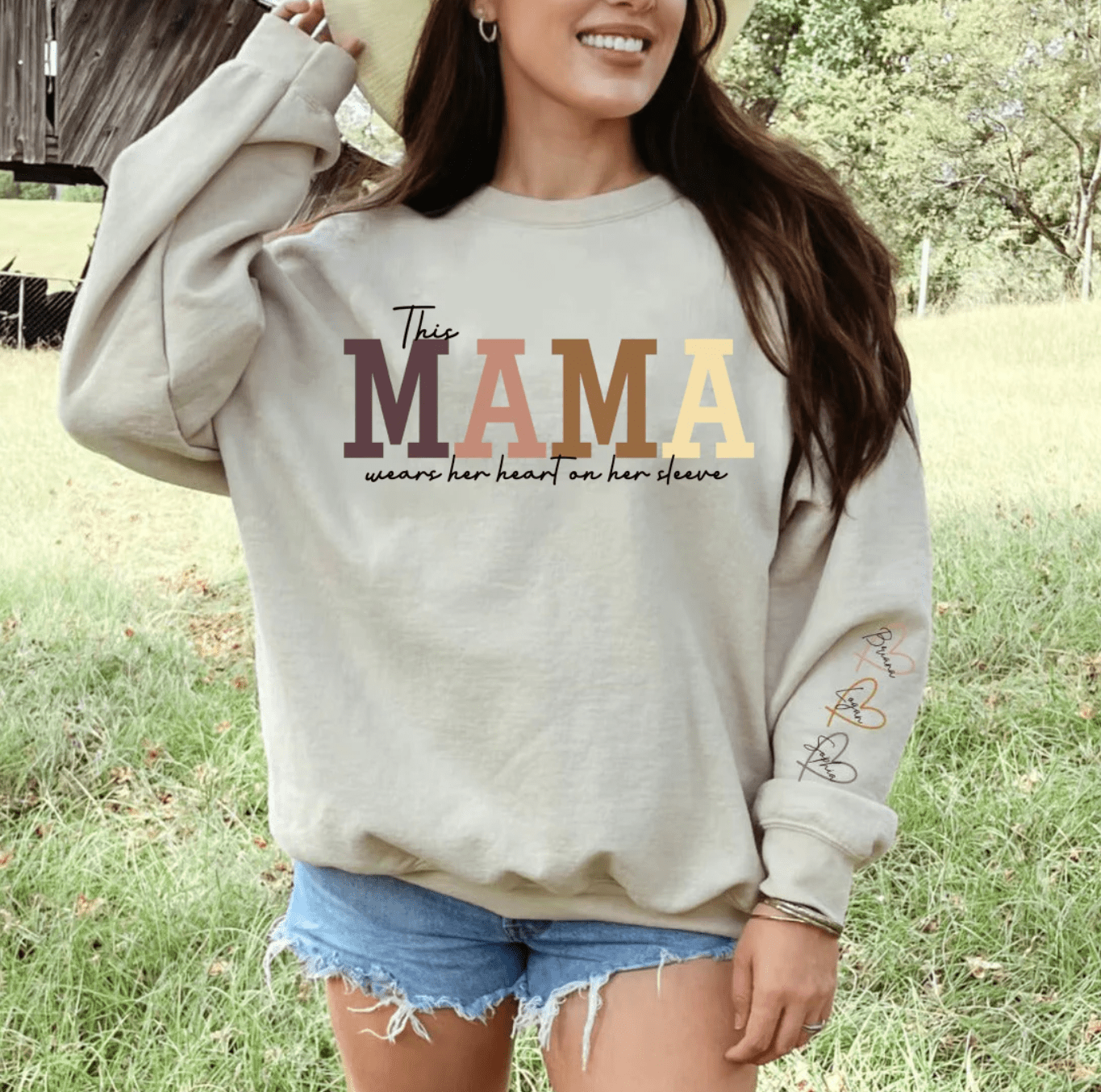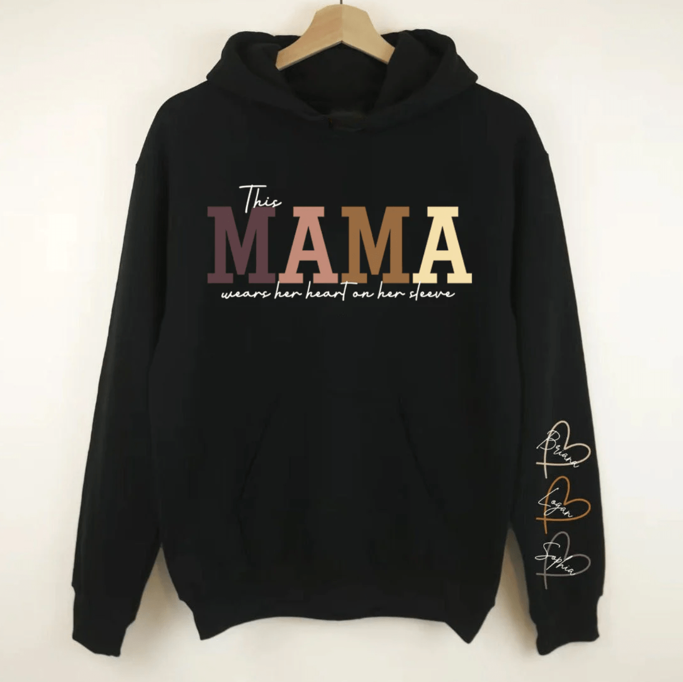 Make this Mother's Day unforgettable with our remarkable Personalized MAMA Wears Her Heart On Her Sleeve Sweatshirt.
