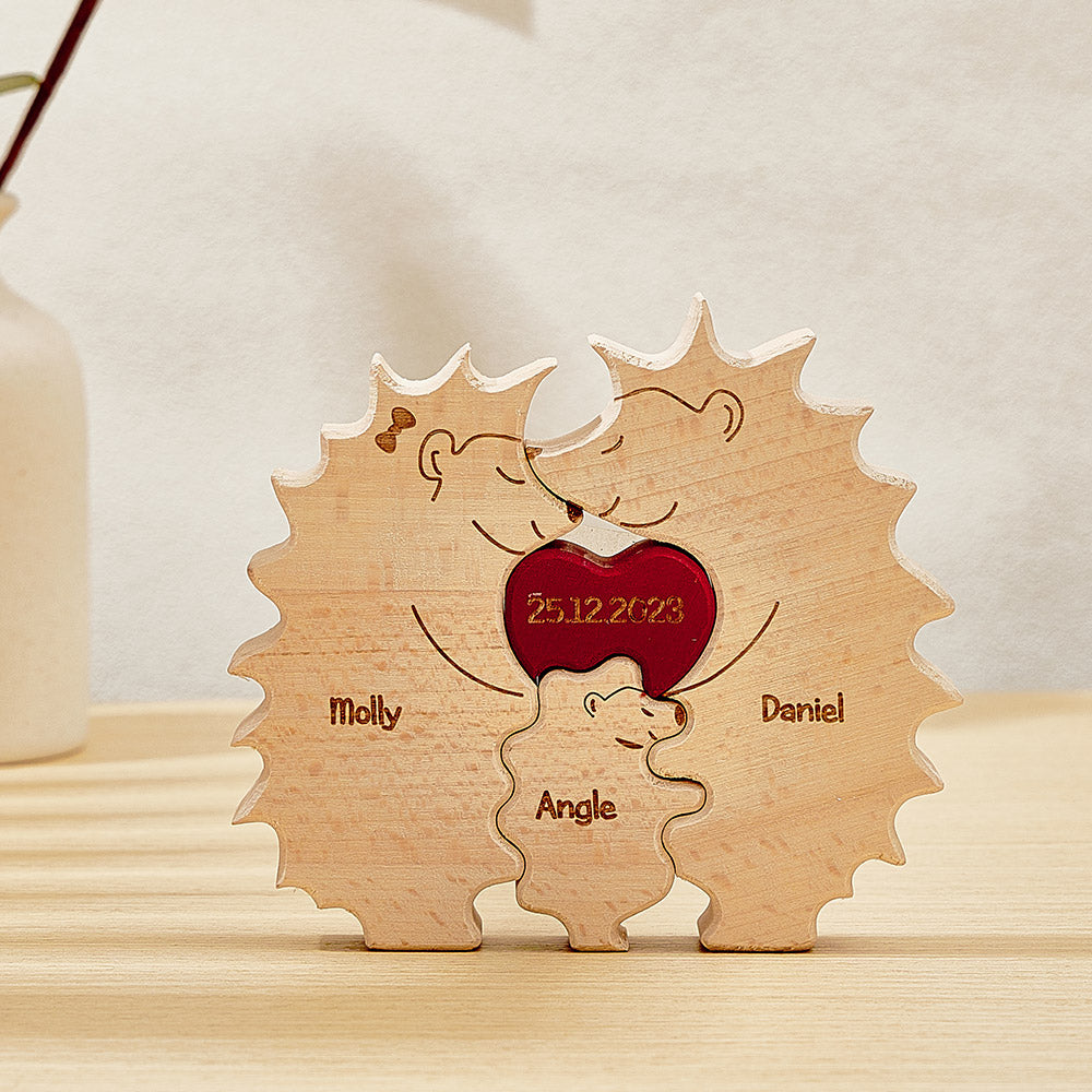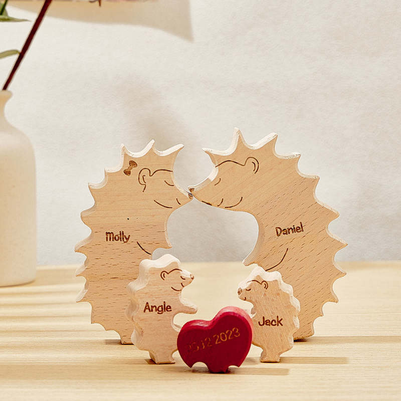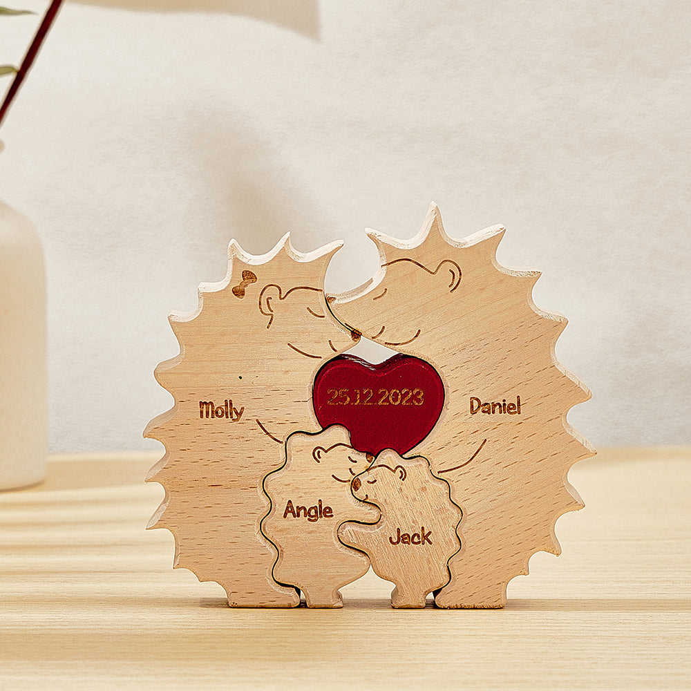 Puzzle Hérisson En Bois Personnalisé, Noms De Famille De Hérisson Personnalisés, Cadeaux De Décoration Pour La Maison