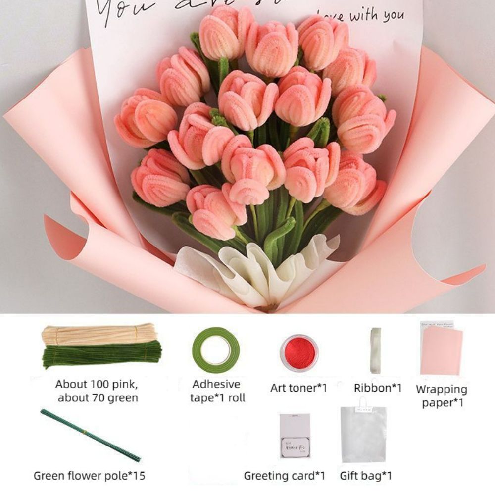 Diy Pipe Cleaner Tulip Bouquet Handmade Twist Stick Bouquet Cadeau Pour Elle