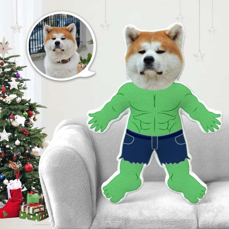 Cadeaux personnalisés d'oreiller de photo de chien d'animaux en peluche pour des cadeaux de Noël de costume de Hulk d'amoureux de chien