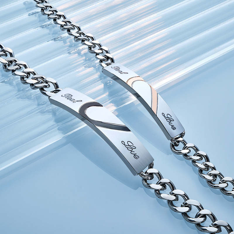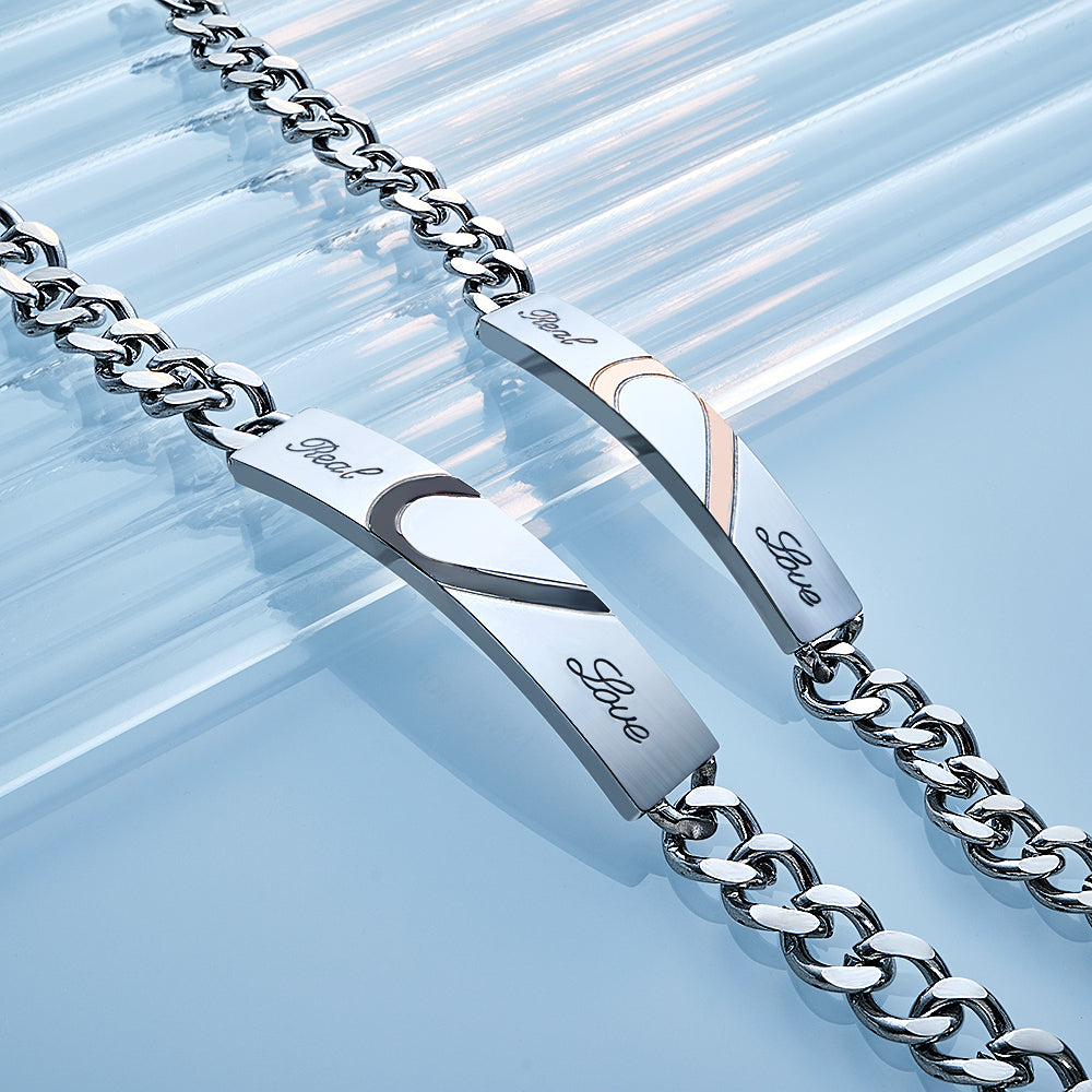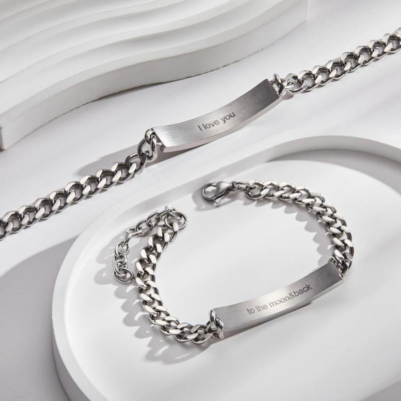 Bracelet Couple Gravé Personnalisé Amour Coeur Large Chaîne Bracelet Cadeaux Saint Valentin