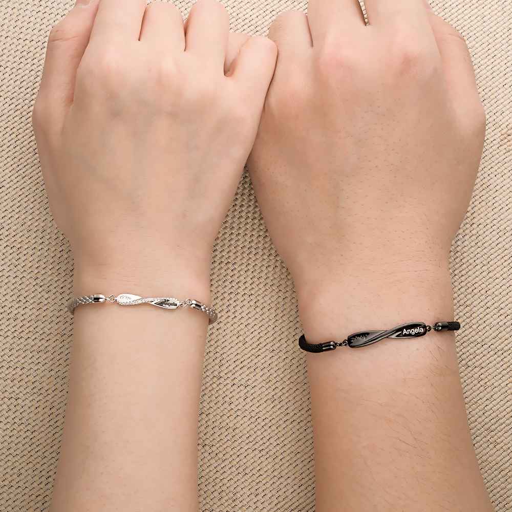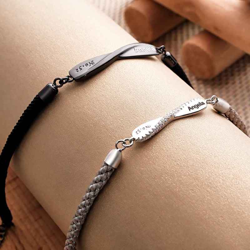Bracelet Couple Mobius Gravé Bracelet Tressé Personnalisé Cadeaux Saint Valentin
