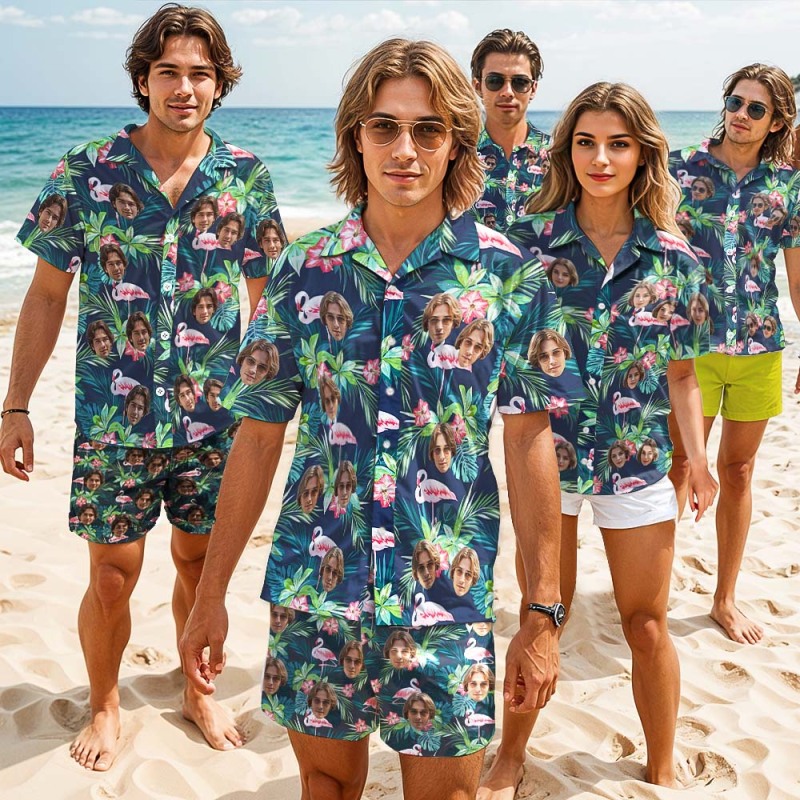 Mettez votre photo sur une chemise hawaïenne et un short de plage personnalisés séparément.