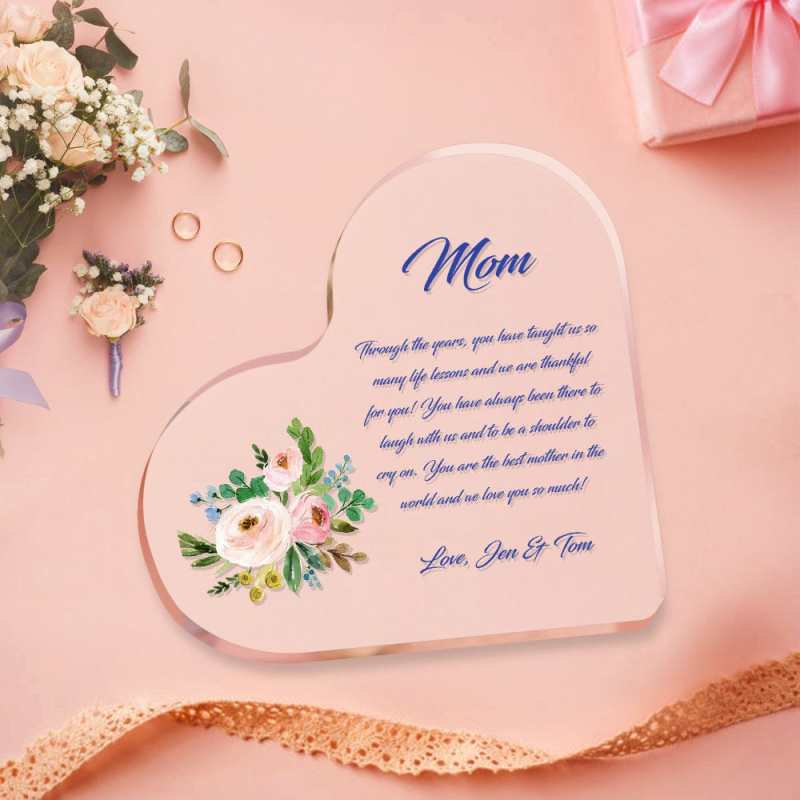 Plaque Personnalisée Coeur Acrylique pour Maman Cadeaux Fête des Mères Personnalisés