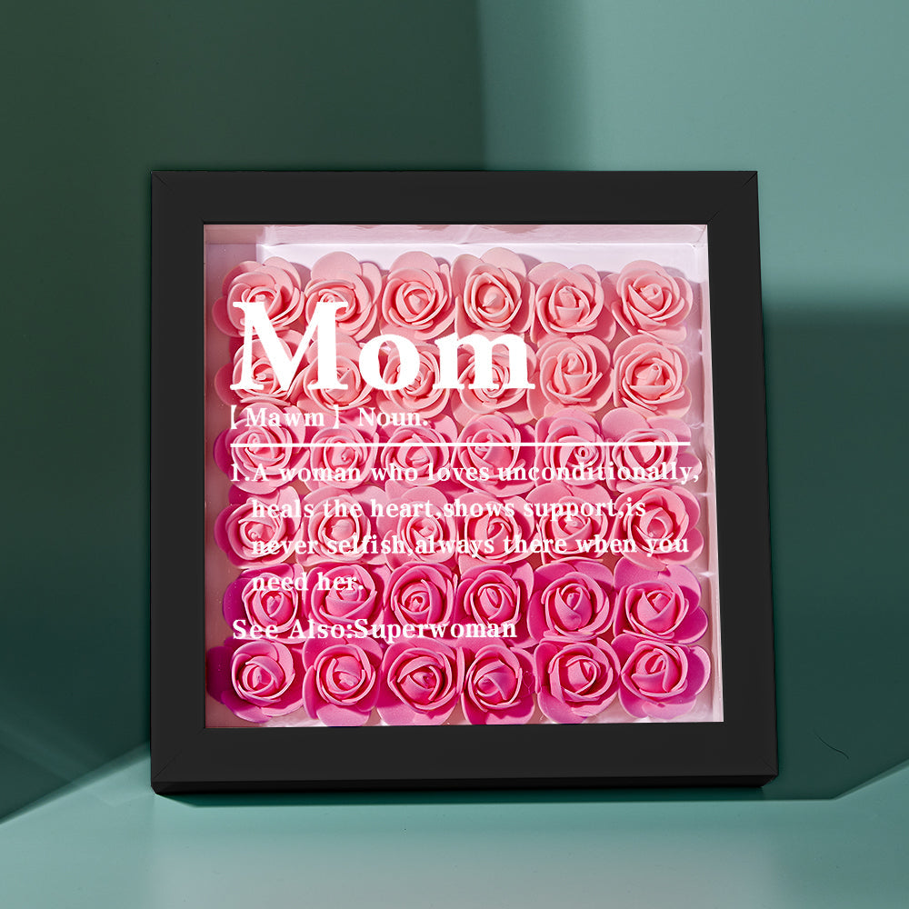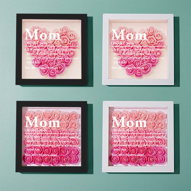 Cadeau De Cadre De Boîte D'ombre De Fleur Rose Dégradé Pour Maman