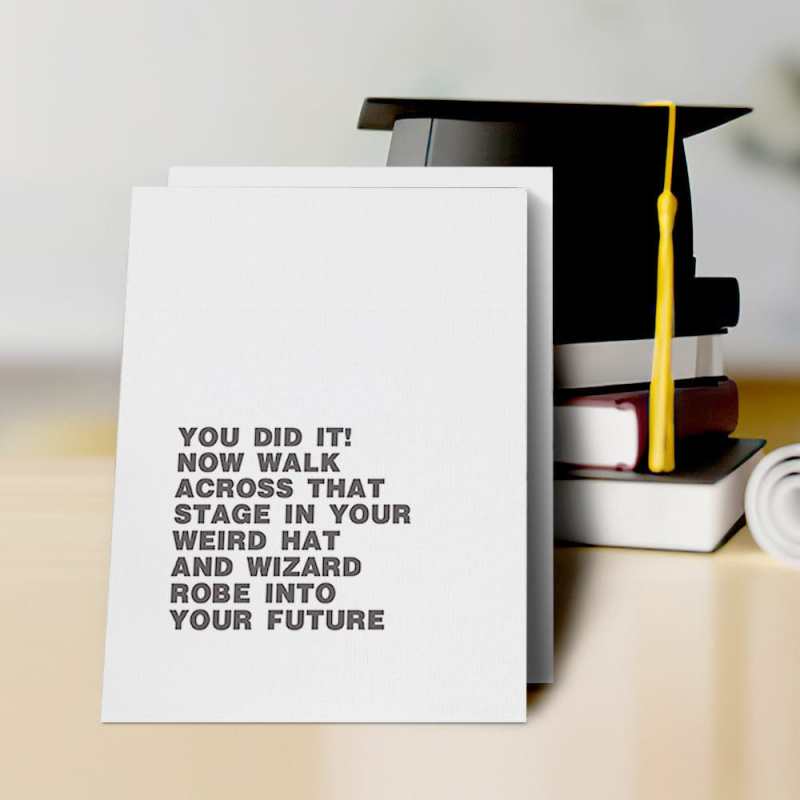 Vous cherchez une belle carte de remise de diplôme ? Notre carte de félicitations pour les diplômés est parfaite pour le diplômé du secondaire ou de l'université dans votre vie !