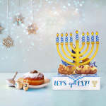Cette carte 3D Hanukkah Box apparaît sous la forme d'un chandelier avec une serrure et les mots "Let's LIT" en bleu doré et en feuille d'aluminium au recto. Elle est parfaite pour les célébrations de Hanoukka et de la Pâque. Il peut également servir de décoration de table lors d'une fête de Hanoukka.