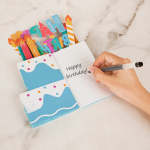 Surprenez-les le jour de leur anniversaire avec ce centre de table nid d'abeille Happy Birthday Cake Pop Up. Nos centres de table Happy Birthday Cake sont parfaits à offrir et à exposer. Célébrez un anniversaire ensemble, écrivez vos souhaits pour le gagnant de l'anniversaire sur l'une des bougies en papier, et ajoutez-les à la garniture du gâteau pop-up. Vous pouvez écrire vos informations personnelles dans la section centrale qui offre de l'espace pour vos vœux.