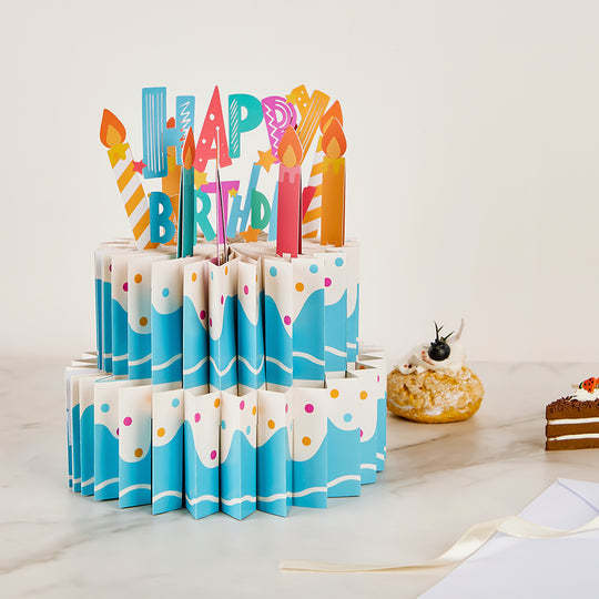 Le paquet comprend un magnifique gâteau d'anniversaire pop-up avec une décoration en nid d'abeille et 8 bougies en papier pour écrire des vœux d'anniversaire.
