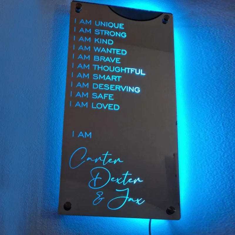 Highlights:This super stylish personalised name mirror with LED lighting is a perfect and unique edition to any youngsters bedroom, they will love lighting up the personalised mirror and seeing their own name in lights.This eye-catching personalised name mirror makes the perfect gift and it will be cherished and loved for many years to come by the recipient.Includes remote control for LED lighting and chrome wall mounting stand offs.Product basic information:What's in the box?Mirror with any name engravedLED lightingAcrylic safety mirror is lightweight and shatterproofRemote ControlWall Mounting Stand OffsMaterials:High quality official acrylic Acrylic safety mirror is lightweight and shatterproof.Product sizes:400mm x 200mm/510mm x 250 mm USB CABLE SIZE 1.5 meters long.This item needs 3-5 business days to handcraft.If you have any further questions about the product, feel free to message me!
