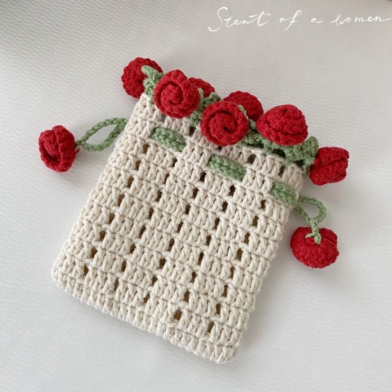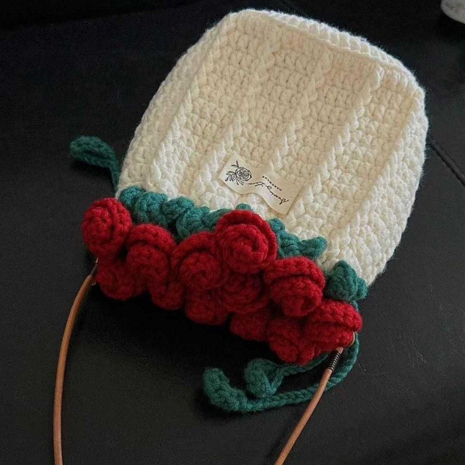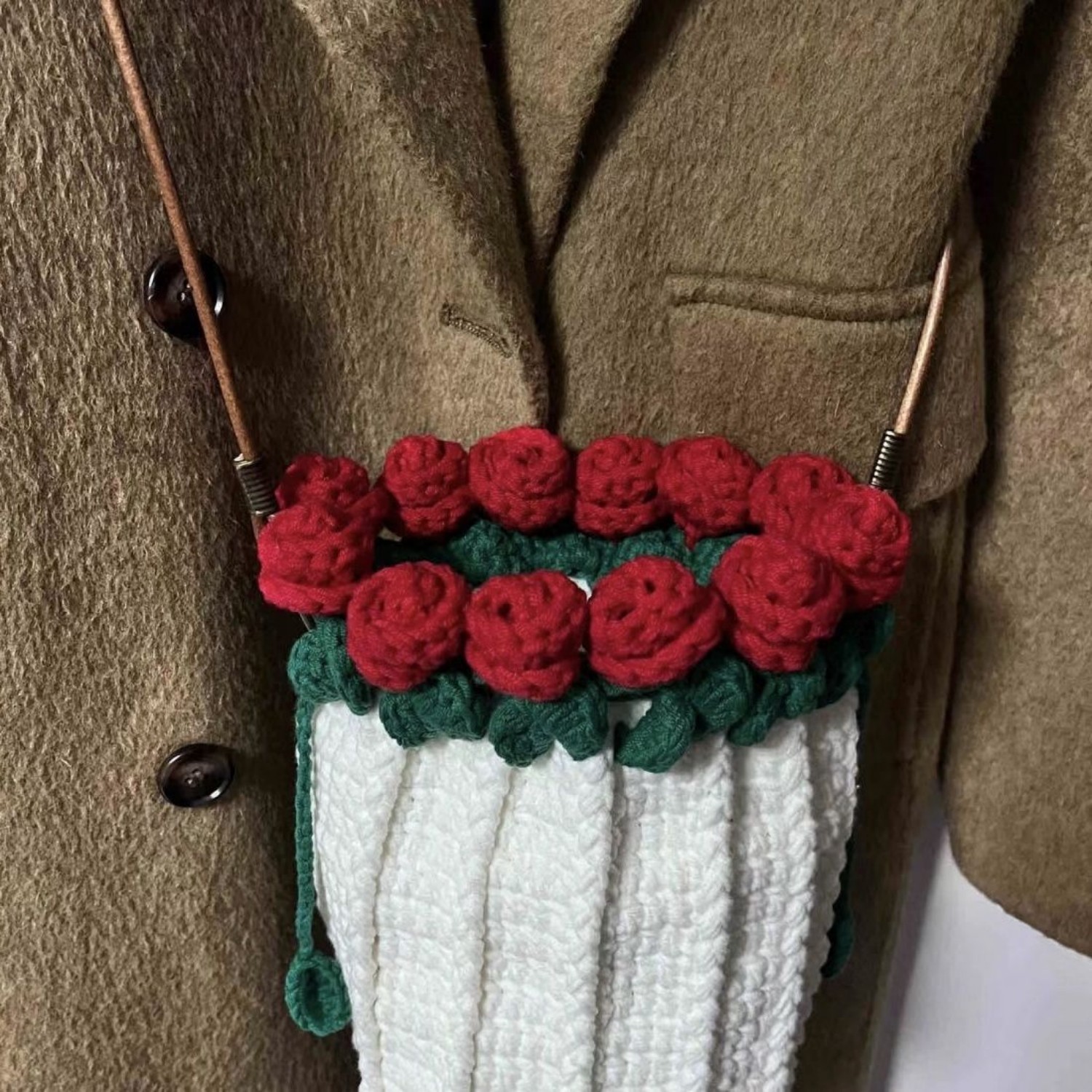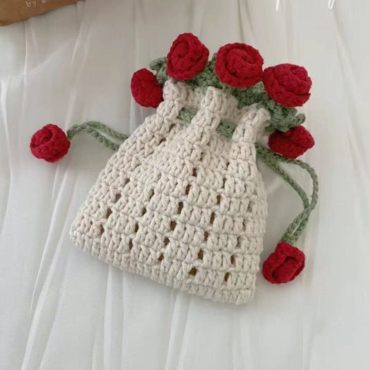 Sac À Bouquet De Roses Tricoté, Sac Seau Tissé, Bouquet De Fleurs Tissé À La Main Prêt À Offrir À Une Mère Ou Une Petite Amie