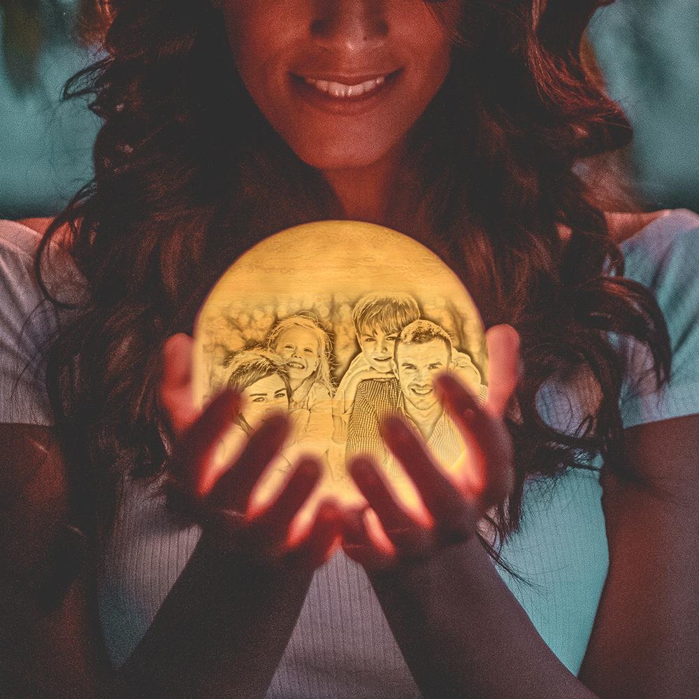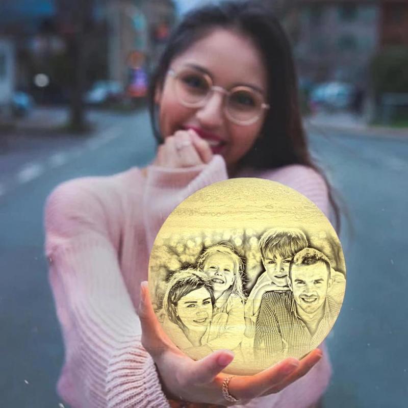 Lampe Jupiter Personnalisée Avec Photo Cadeau Famille - Tactile Deux Couleurs (10-20cm)