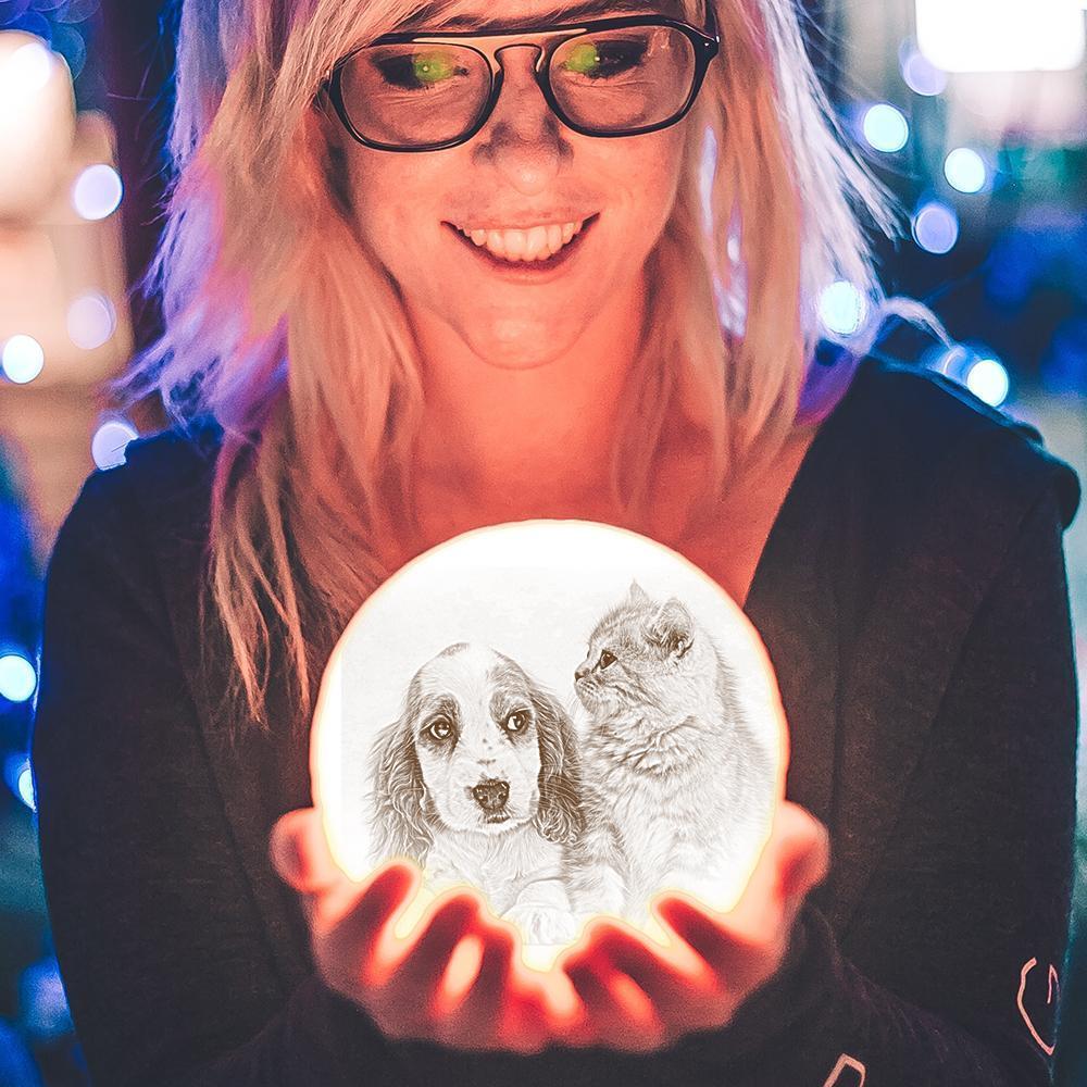 Lampe Lunainre 3D Lampe Photo Cadeau Pour Les Amoureux des Animaux - Télécommande 16 Couleurs