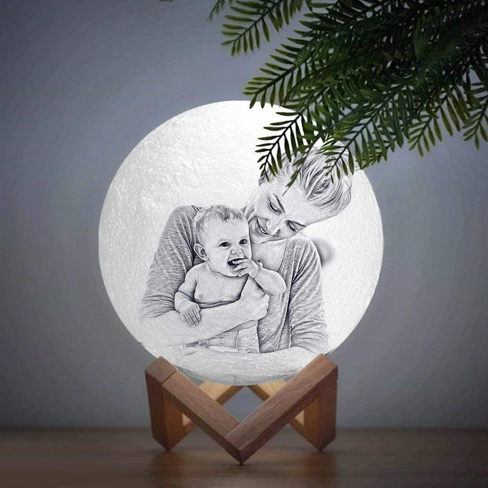 Lampe Lune Avec Photo Cadeau Pour Famille - Tactile Deux Couleurs