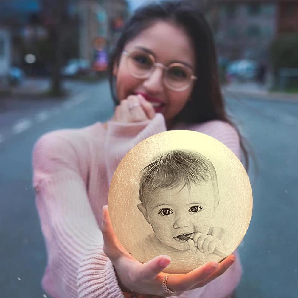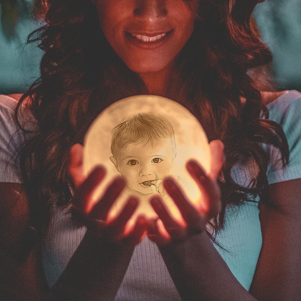 Lampe Lune Personnalisé Cadeau Pour Nouvelle Maman - Télécommande 16 Couleurs