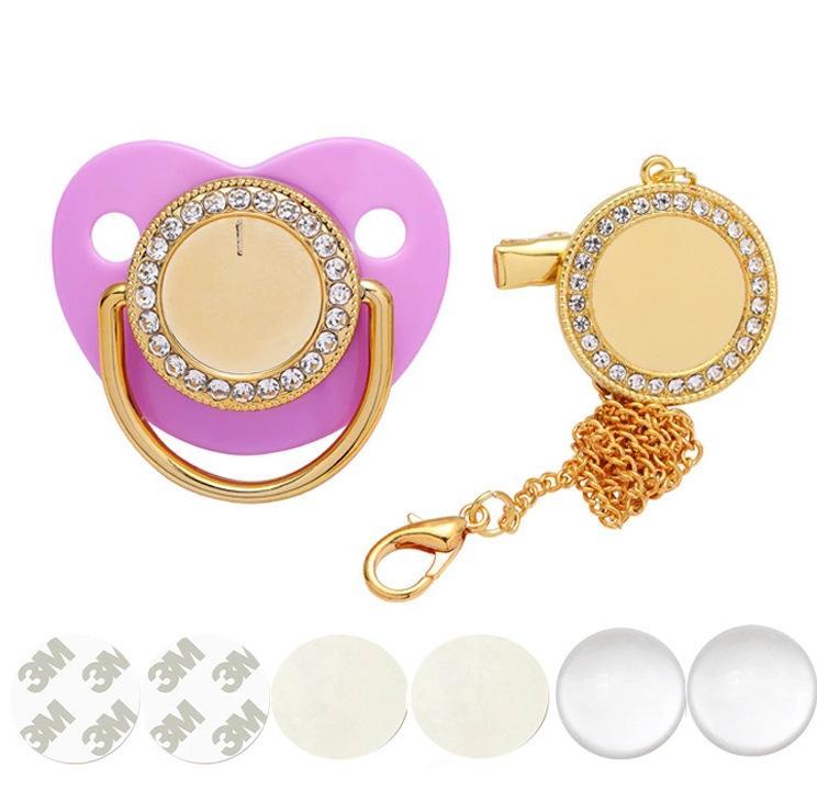 Ensemble De Tétines Dorées De Luxe Personnalisées Avec Photo Et Attache-tétine, Cadeau Personnalisé Pour Bébé, Pour Une Fête Prénatale