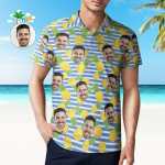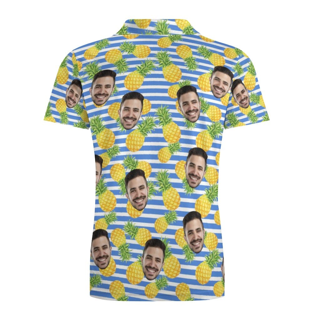 Polo Personnalisé Pour Hommes, Rayures Bleues Avec Ananas, Chemises De Golf Hawaïennes Personnalisées