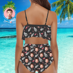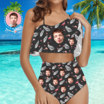 Imprimez votre visage sur un vrai bikini d'été à volants pour femme. Encouragez-vous ou montrez votre amour et votre soutien à votre bien-aimé avec votre idée géniale.