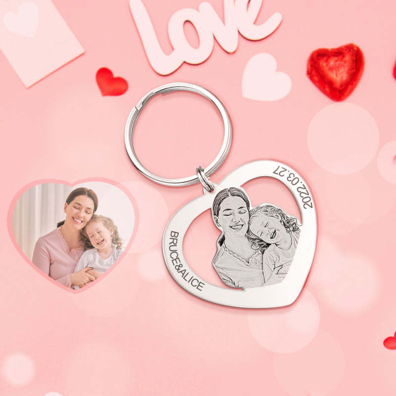 Porte-clés Fête Des Mères Porte-clés Coeur Cadeaux Pour Maman Photo Gravée