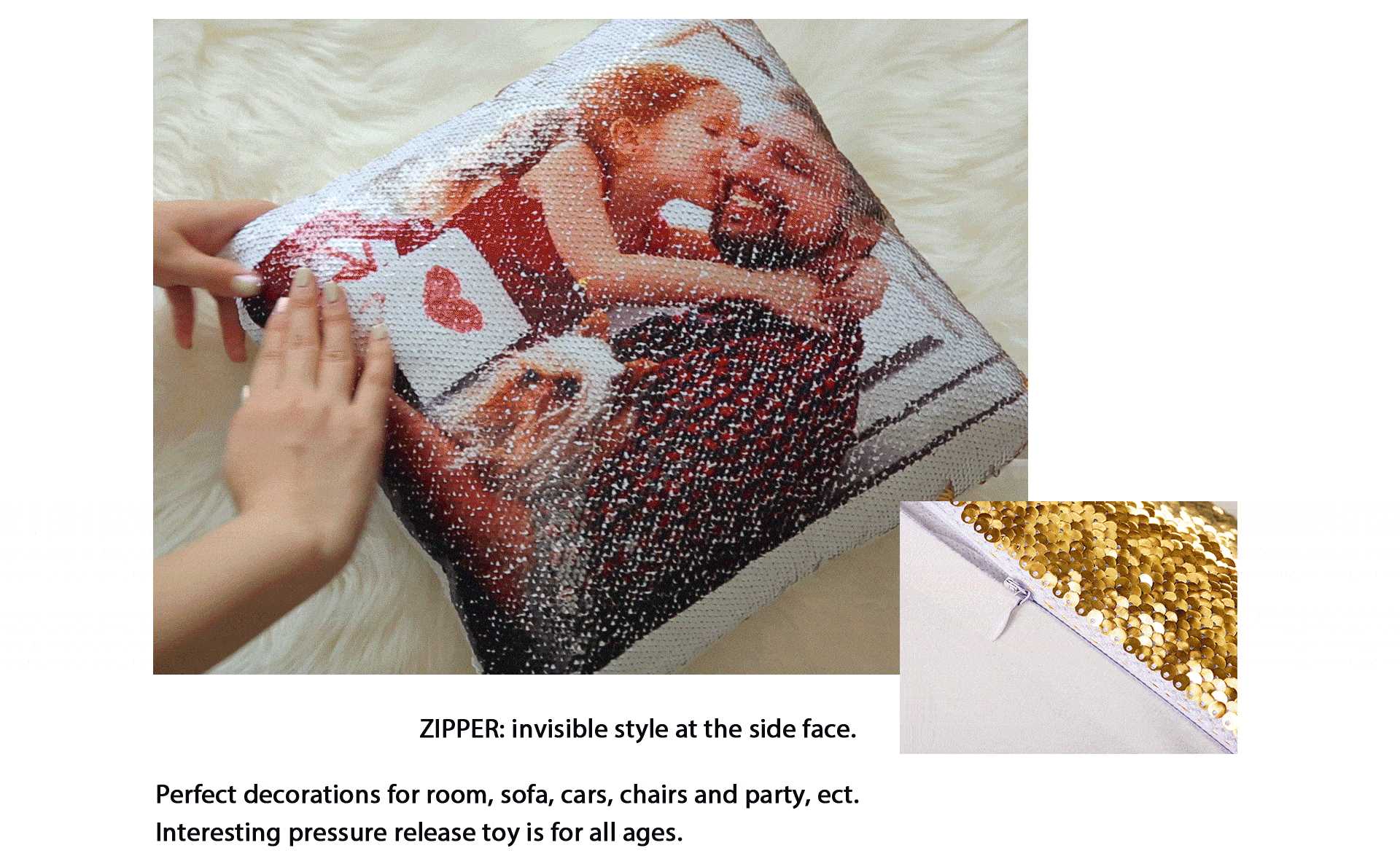 Un coussin à paillettes est un article indispensable, chaque côté de la paillettes est d'une couleur différente, et lorsque vous retournez les paillettes de l'autre côté, votre photo disparaît et devient un secret ! La housse de coussin peut être lavée à la main à 30 degrés et doit être séchée à l'air.
