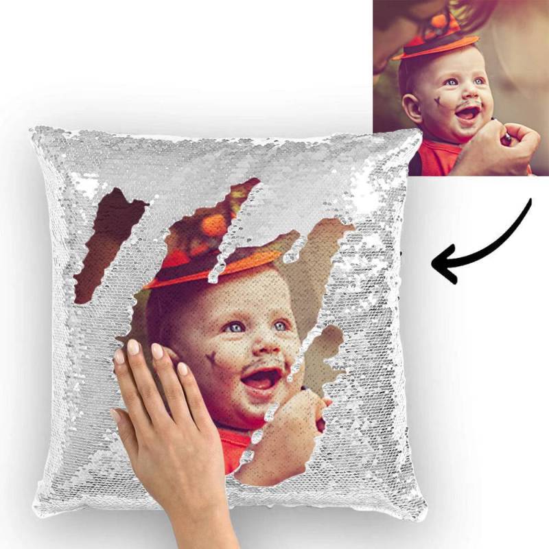 Oreiller Personnalisé Oreiller de Paillettes Avec Photo Cadeau Pour Maman - Jaune