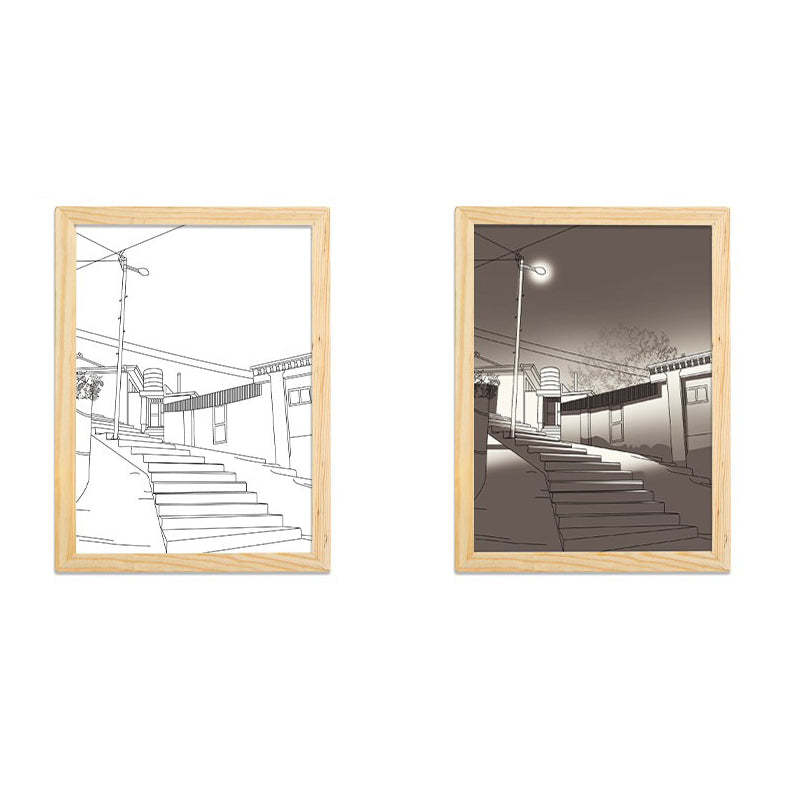 Stile and rail peut être présenté de deux façons. Il peut être accroché au mur ou posé sur une table. (Un cadre est fourni avec un crochet. Vous pouvez l'utiliser pour accrocher le cadre au mur).