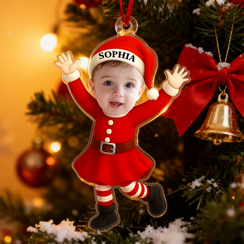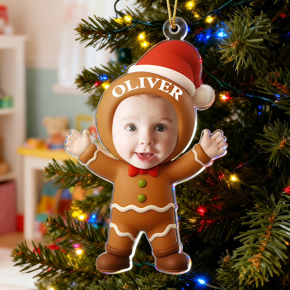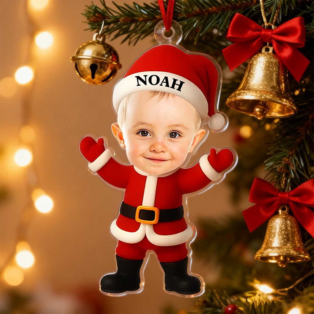 Ornement De Noël Personnalisé Pour Bébé (premier Noël) En Acrylique : Motif Père Noël, Lutin Et Pain D'épice Avec Photo
