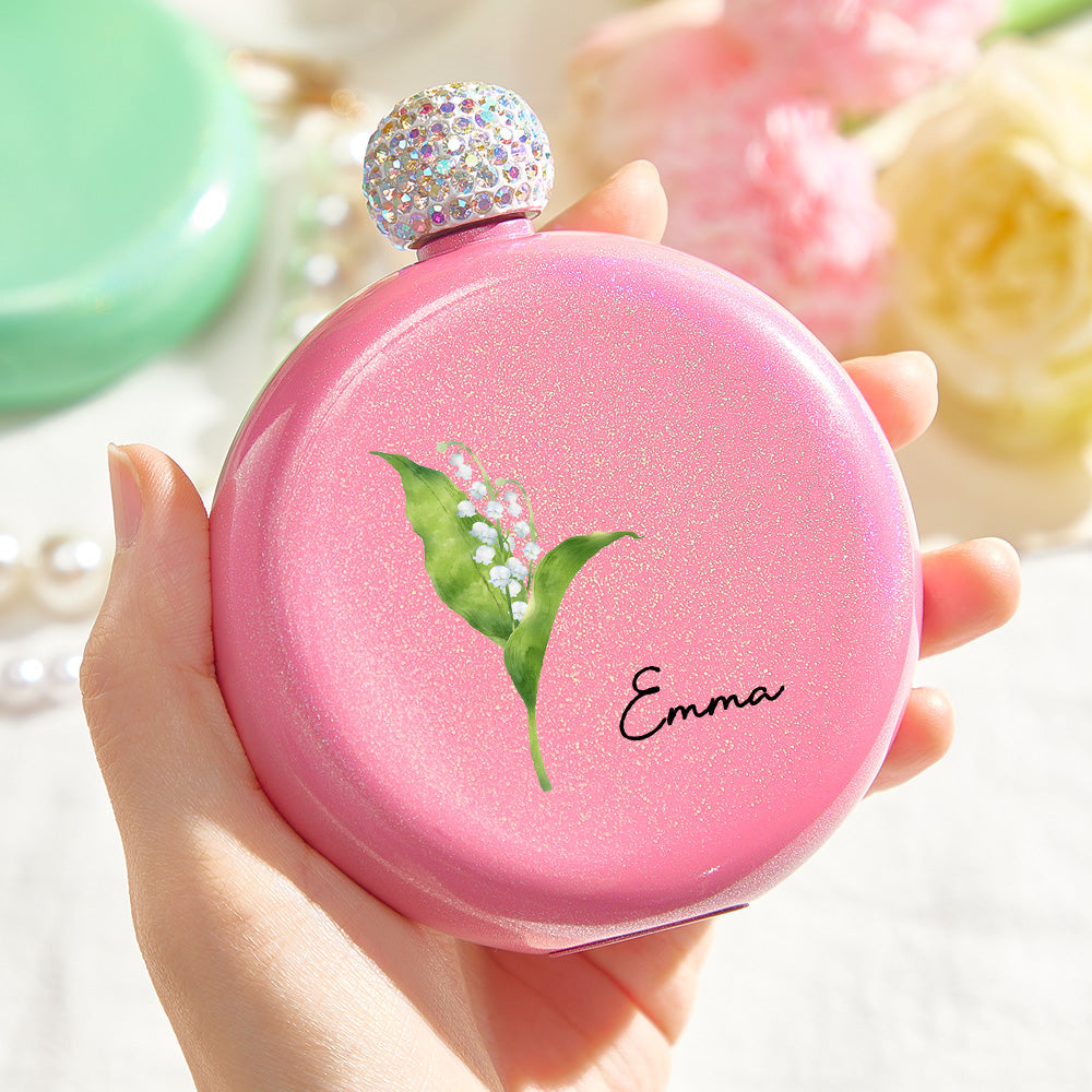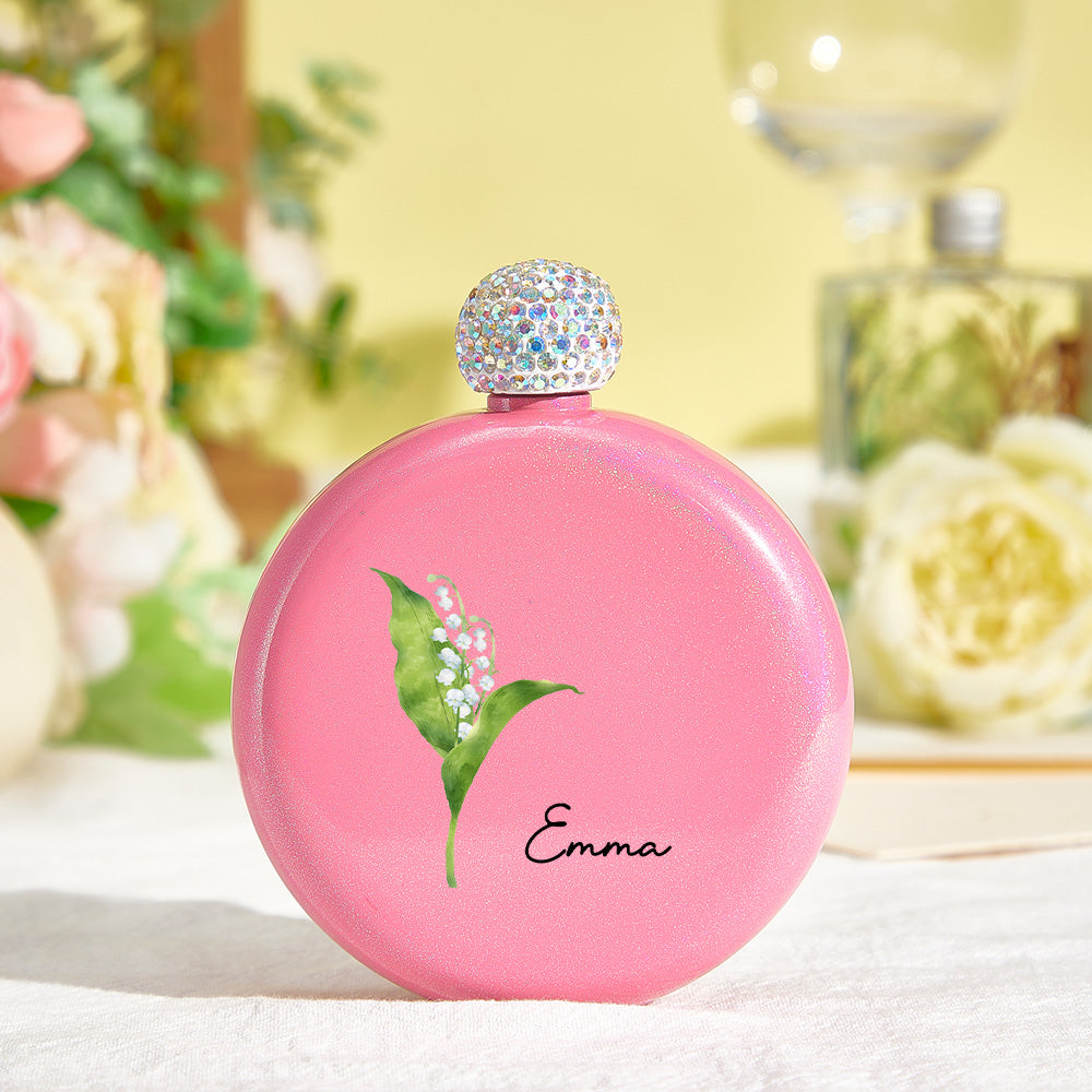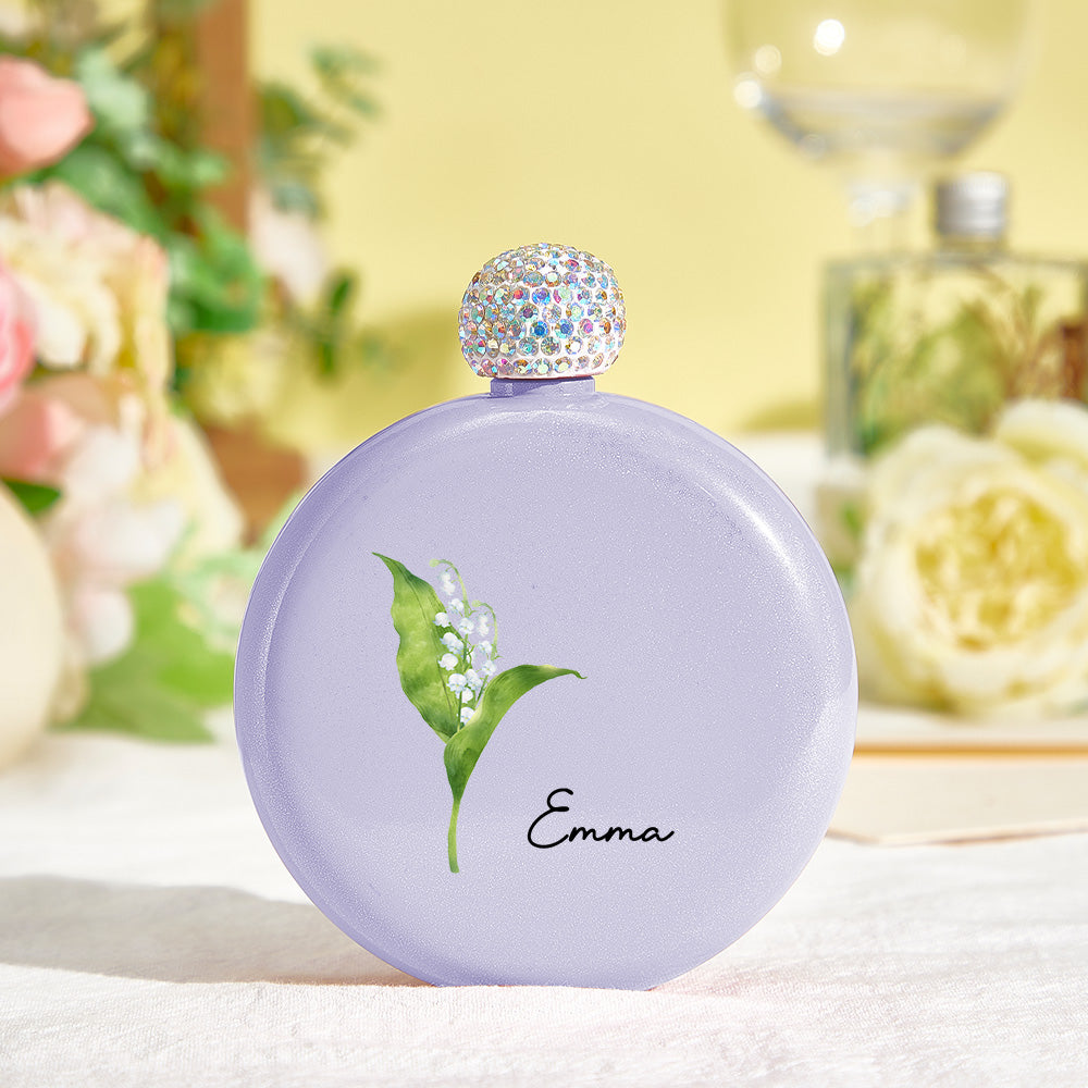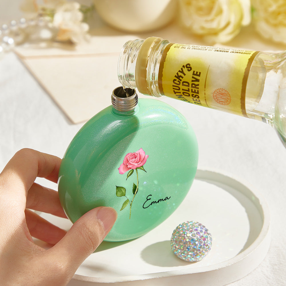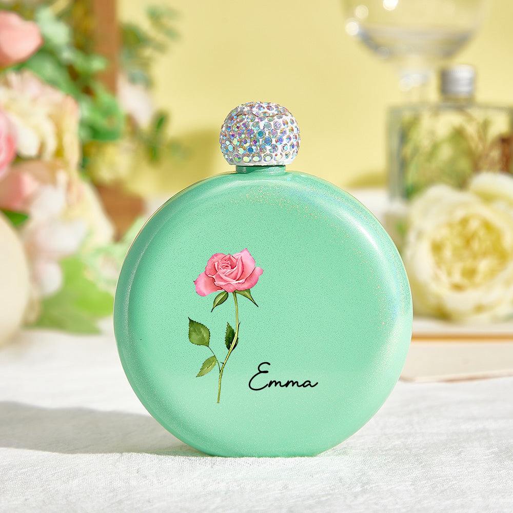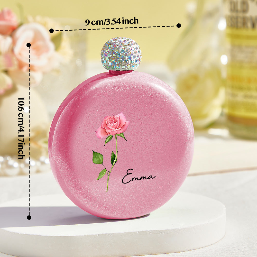 Flacons Ronds Personnalisés En Forme De Fleur De Naissance Avec Nom, Flacon À Paillettes De 5oz, Cadeau De Fête D'anniversaire Pour Demoiselle D'honneur Pour Filles