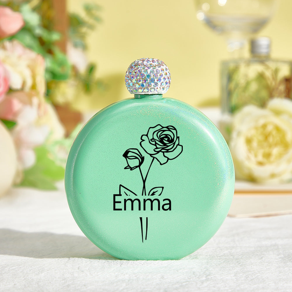 Flacons Ronds Personnalisés En Forme De Fleur De Naissance Avec Nom, Flacon À Paillettes De 140 Ml, Cadeau D'anniversaire De Mariage Pour Elle