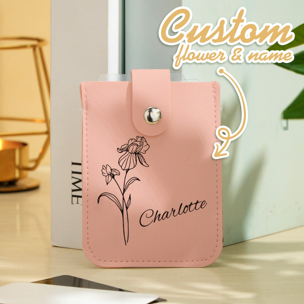 Portefeuille Personnalisé Avec Fleur De Naissance Et Nom, Mini Porte-cartes À Tirer, Cadeau Pour Elle