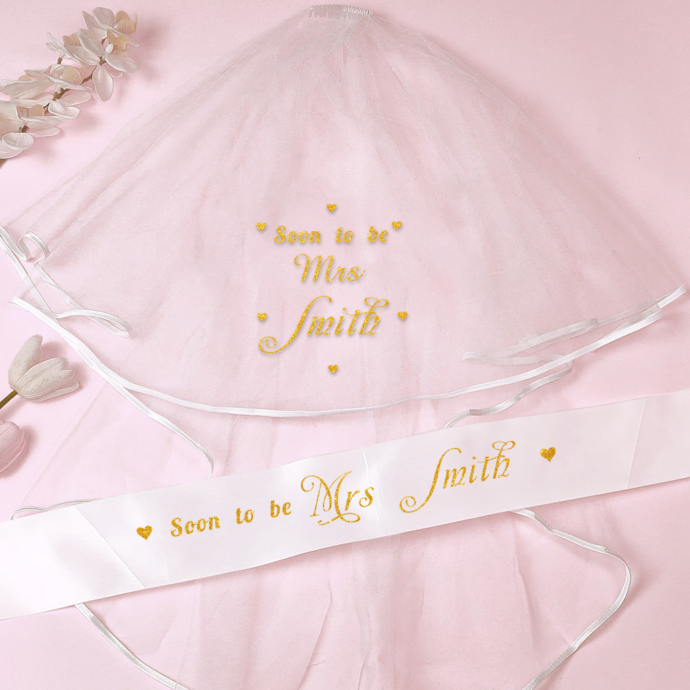 Ensemble De Ceinture De Voile De Mariée Personnalisé, Accessoires De Fête Pour Future Mariée