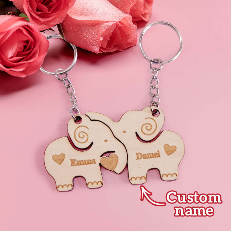 Porte-clés Personnalisé Assorti Pour Couple, Éléphants, Cadeaux De Saint-valentin Pour Amoureux