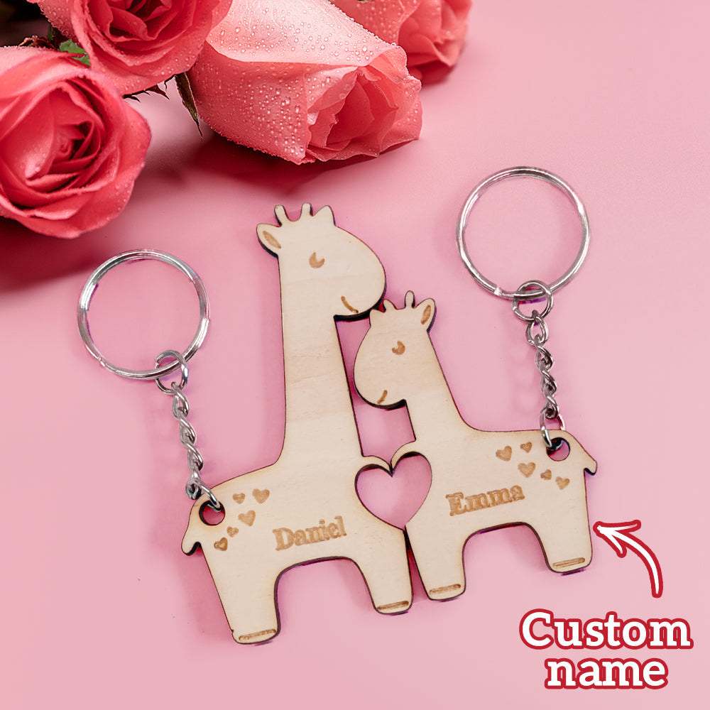 Porte-clés Personnalisé Assorti Pour Couple, Girafes, Cadeaux De Saint-valentin Pour Amoureux