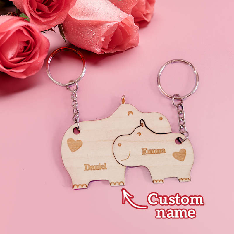 Porte-clés Personnalisé Assorti Pour Couple, Hippopotame, Cadeaux De Saint-valentin Pour Amoureux