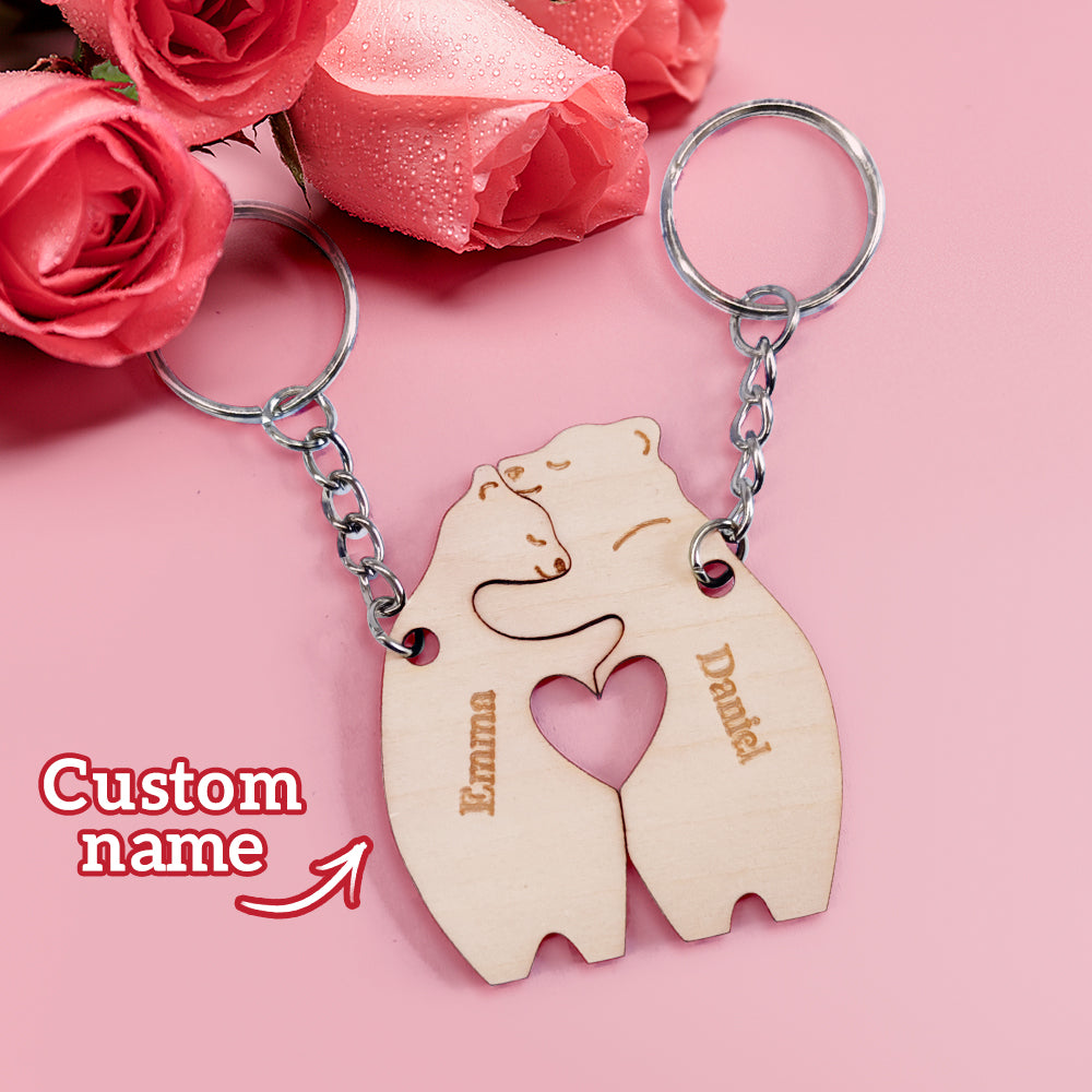 Porte-clés Personnalisé Assorti Pour Couple, Ours À Câlins, Cadeaux De Saint-valentin Pour Amoureux