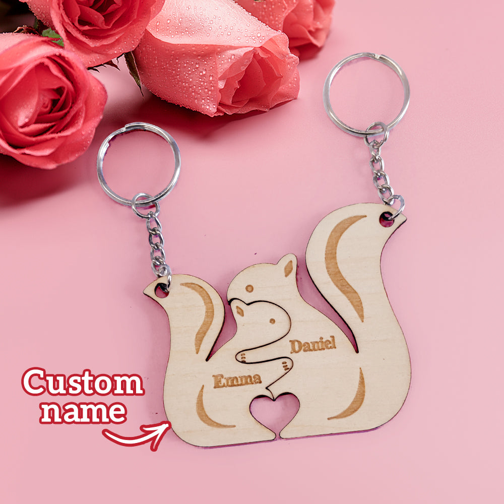 Porte-clés Personnalisé Assorti Pour Couple, Écureuils, Cadeaux De Saint-valentin Pour Amoureux