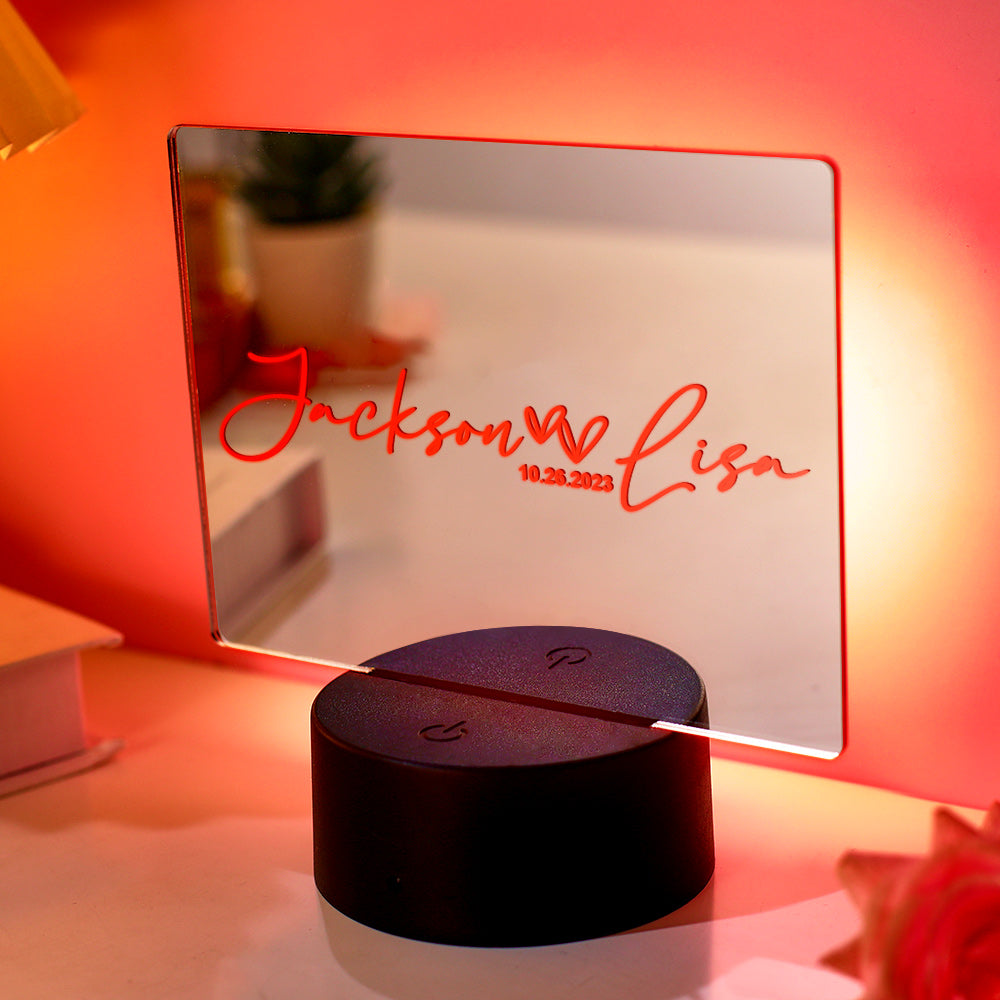 Lampe Miroir Personnalisée Avec Nom De Couple, Cadeau D'amour En Forme De Cœur