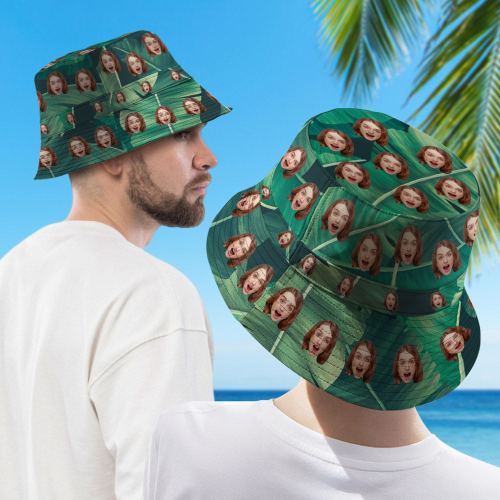 Chapeau De Seau De Style Hawaïen Drôle De Visage Personnalisé Double-side-wear Outdoor Sun Cap