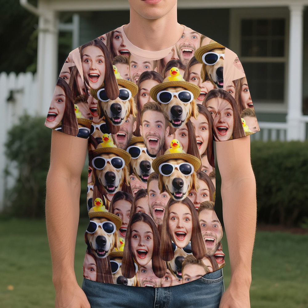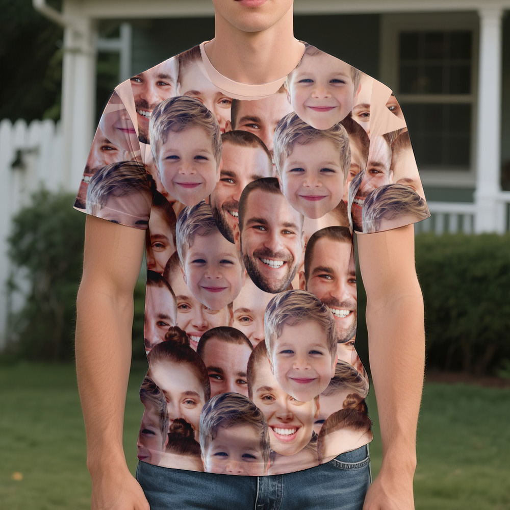 T-shirt Personnalisé Avec Visage Pour Homme, T-shirts Personnalisés Avec Visages De Famille, T-shirts Photo Personnalisés Pour Homme, Cadeau Pour La Fête Des Pères, T-shirt Avec Visages Sur Toute La Surface
