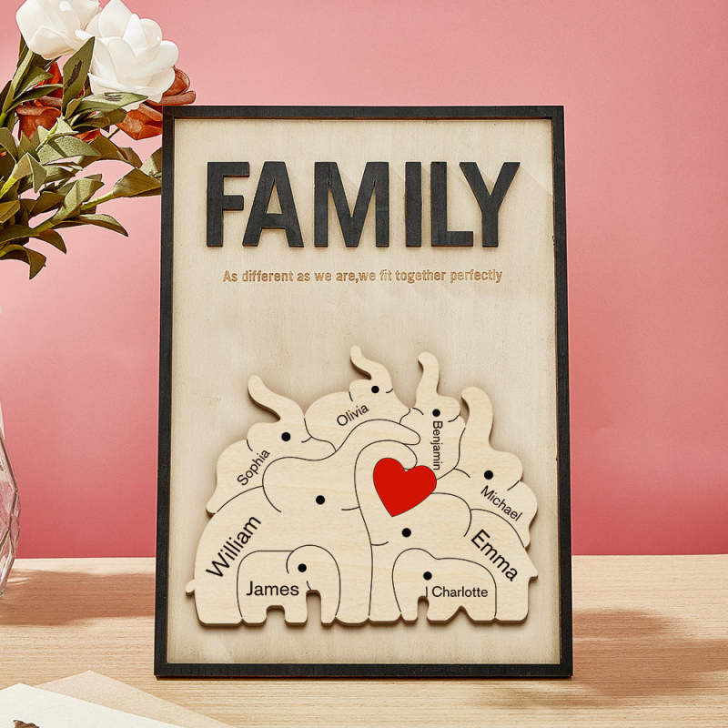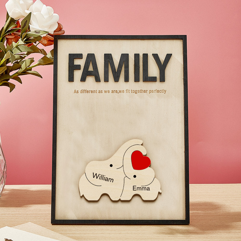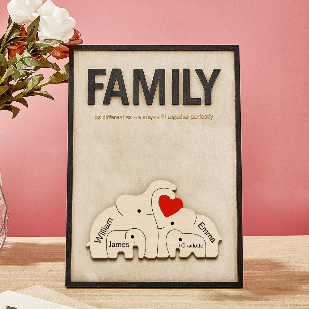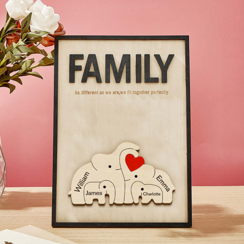 Cette plaque personnalisée en forme d'éléphant familial est le cadeau parfait pour maman. Chaque plaque présente un design unique avec des noms de membres de la famille personnalisés, ajoutant une touche personnelle à n'importe quelle pièce. Fabriquée avec des matériaux de haute qualité, cette enseigne est conçue pour durer et constitue un bel ajout à tout décor d'intérieur.