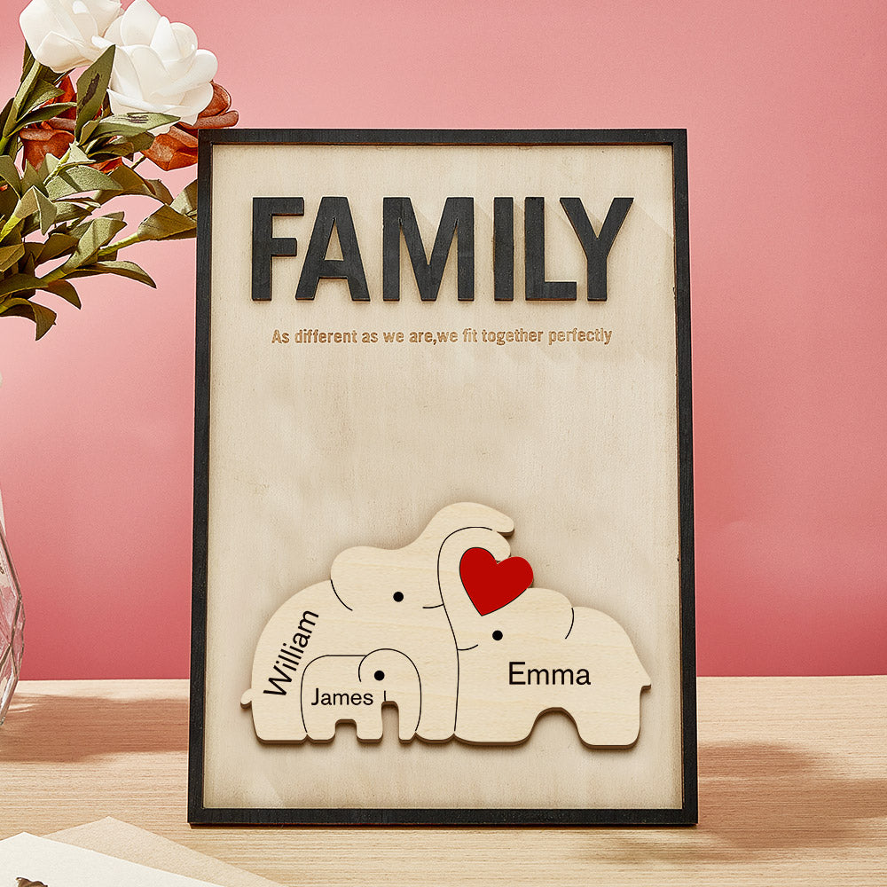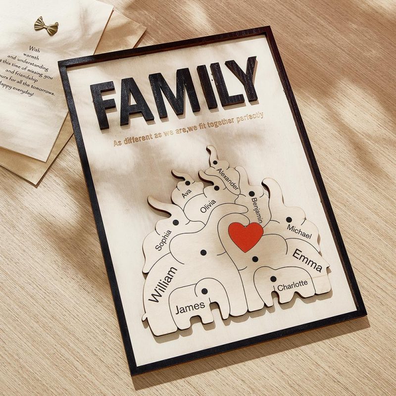 Plaque En Bois D'éléphant De Famille Personnalisée, Signe De Nom De Membre De La Famille, Cadeau Pour Maman