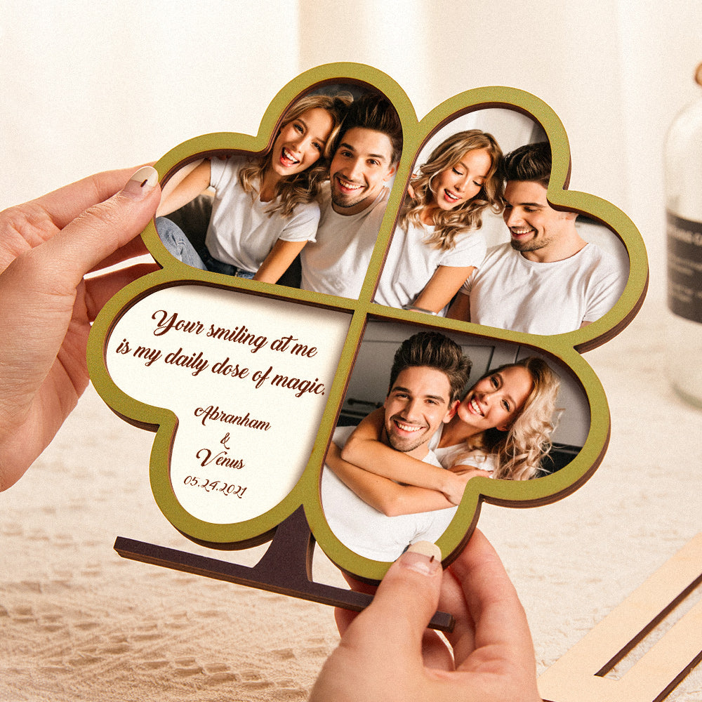 Décor Photo Personnalisé Trèfle À Quatre Feuilles, Plaque En Bois Simple Gravée Sur Mesure Pour Salon