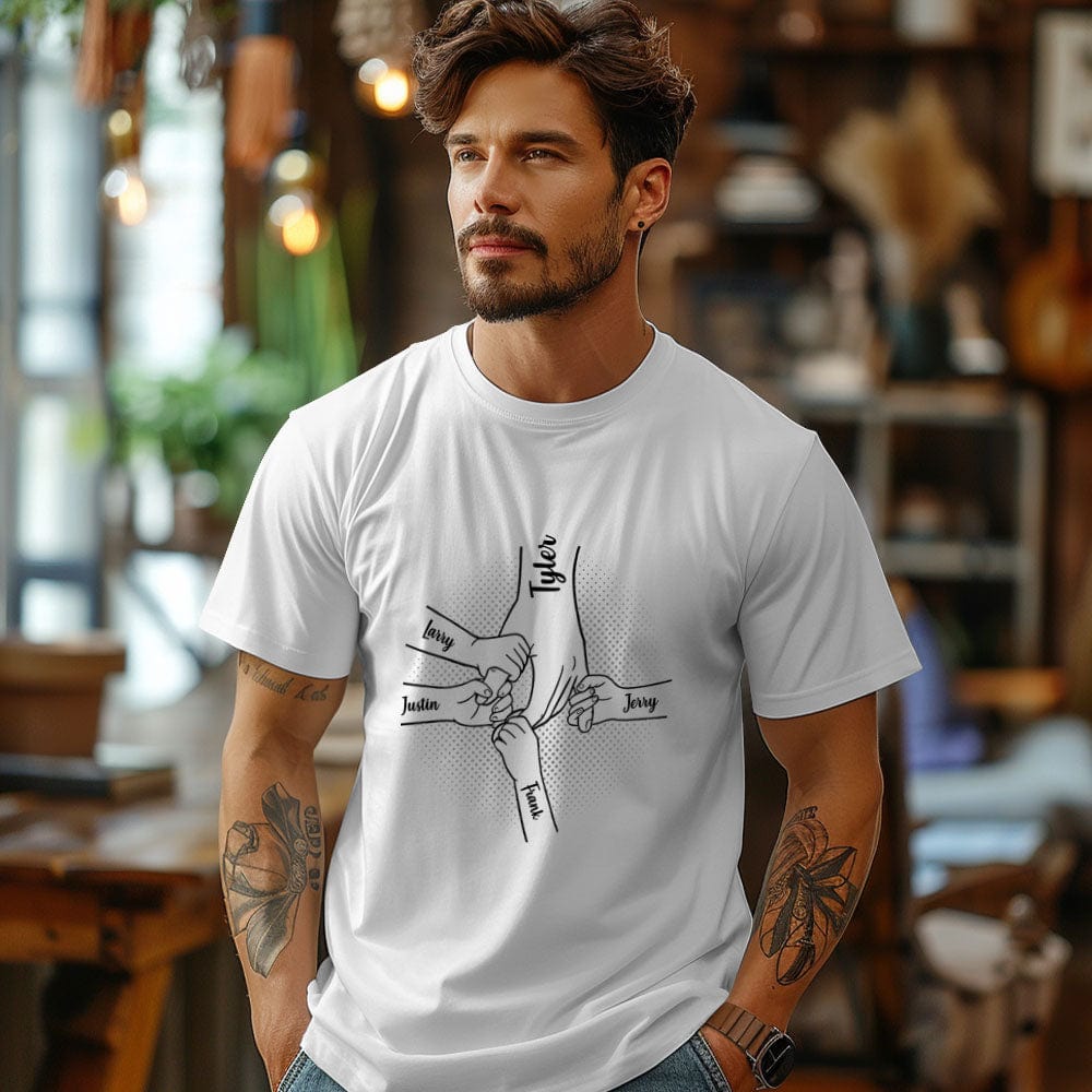 T-shirt Personnalisé Main Dans La Main Je Vous Protégerai Toujours Famille T-shirt Unisexe Personnalisé Cadeaux De Fête Des Pères Pour Papa