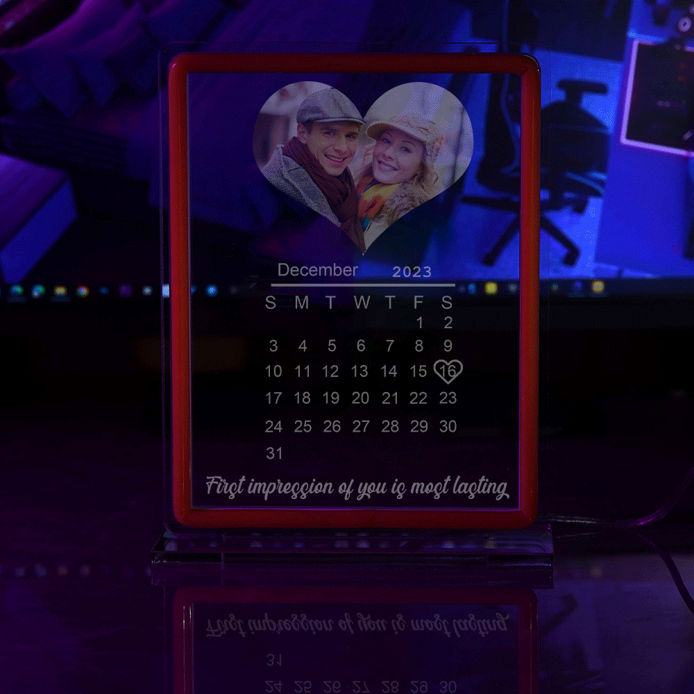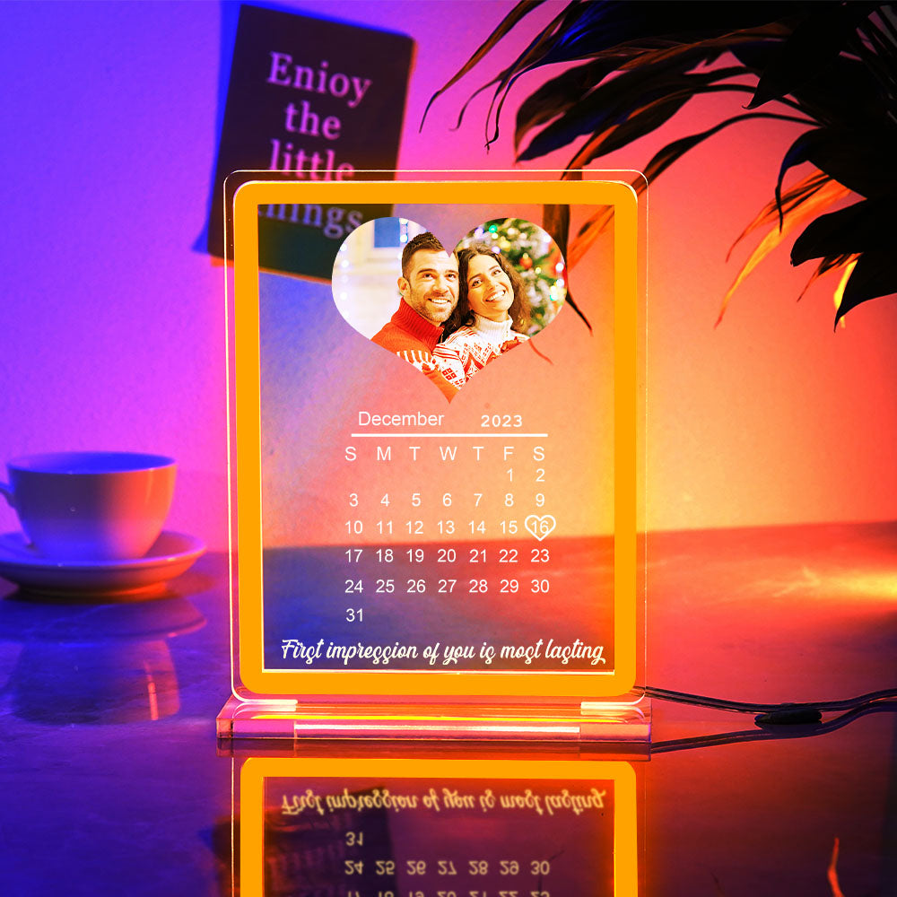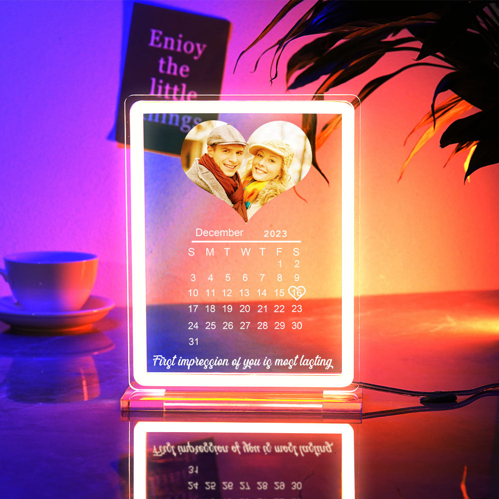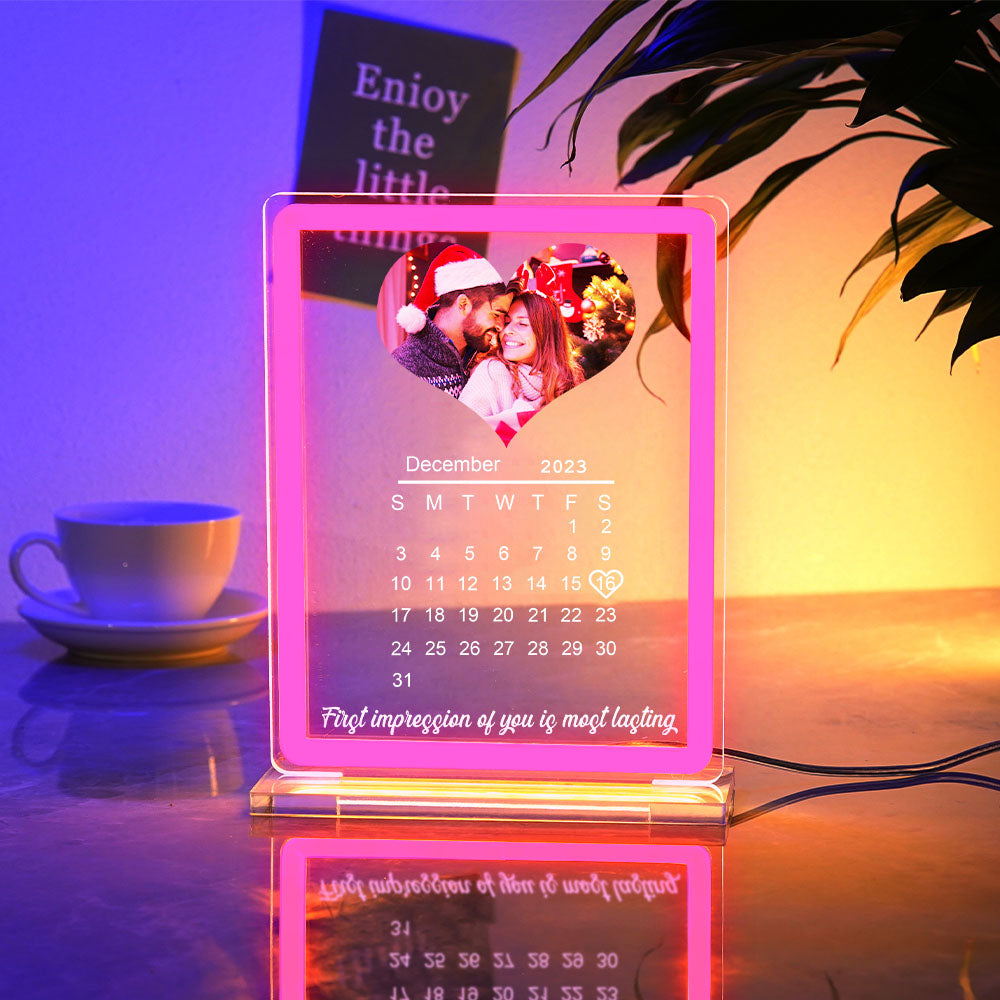 Veilleuse Personnalisée Avec Calendrier Photo En Forme De Cœur, Avec Panneau Néon, Lampe De Date Personnalisée Pour Couples