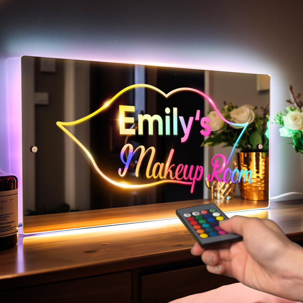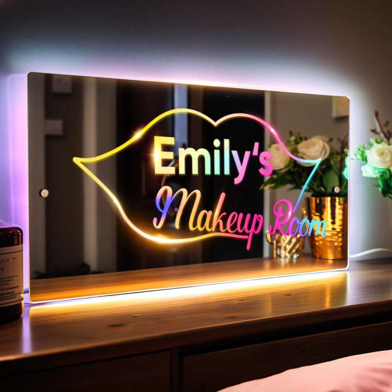 Personalized Makeup Room Wall Mirror Light Sign Colorful Mirror Light Valentine's Day Gift