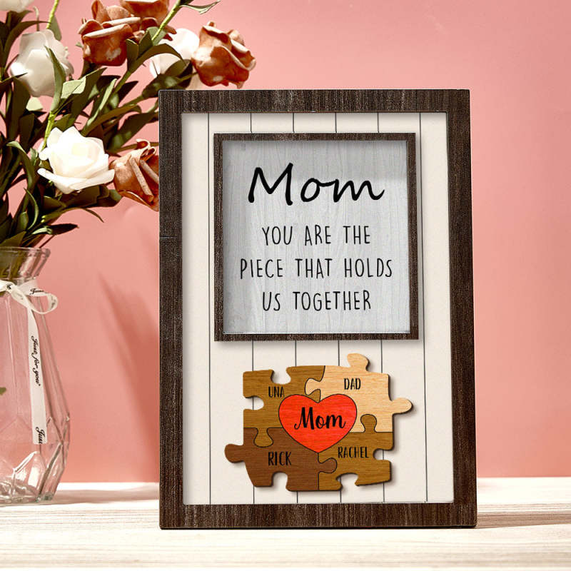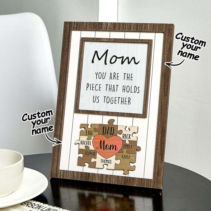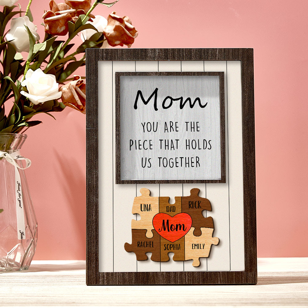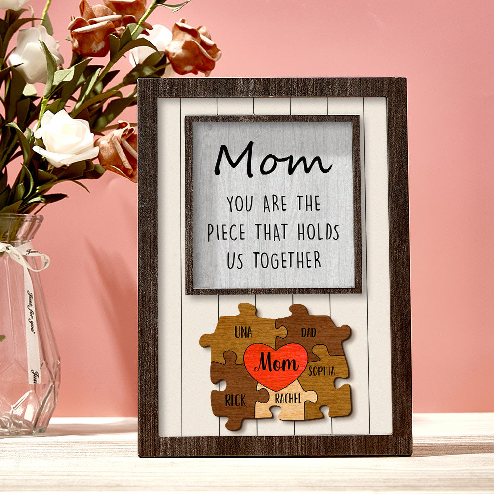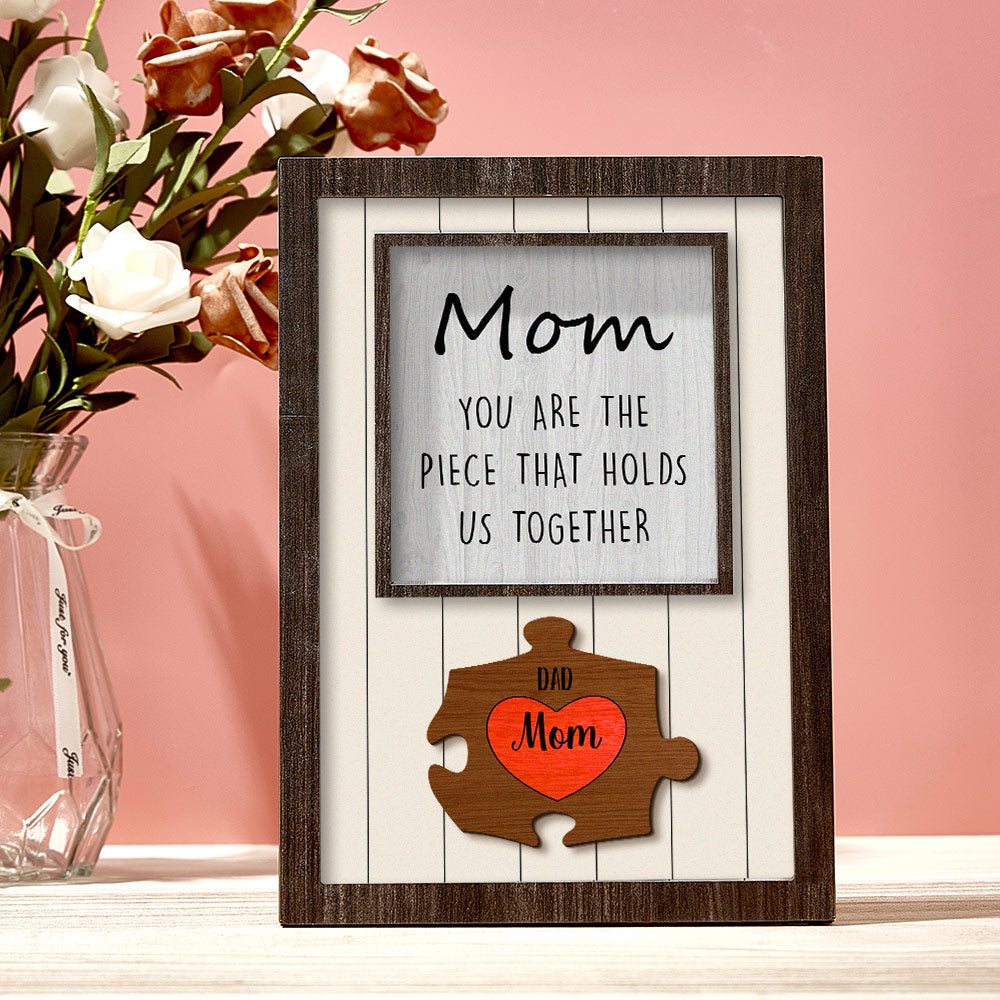 Plaque De Puzzle Personnalisée Pour Maman, Vous Êtes La Pièce Qui Nous Tient Ensemble, Signe De Puzzle Personnalisé Pour Membre De La Famille, Cadeau De Fête Des Mères