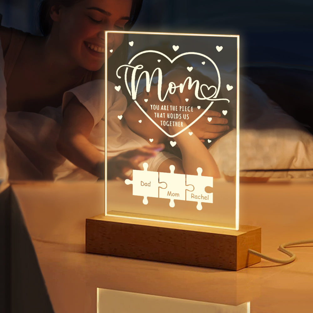 Maman Personnalisée Tu Es La Pièce Qui Nous Tient Ensemble Cadeau De Veilleuse En Acrylique Pour Maman