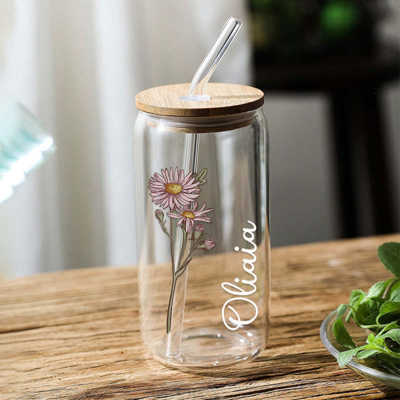 Verre De Canette Avec Nom Personnalisé Avec Fleur De Naissance Colorée, Verre De Canette Personnalisé Avec Paille, Cadeau Pour Mère, Amis, Famille, Demoiselle D'honneur