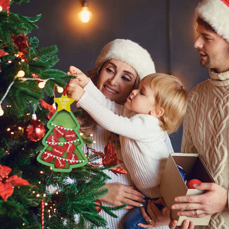 Élevez votre décoration de vacances avec notre décoration de sapin. Ces charmantes décorations shaker personnalisées avec vos noms de famille sont un ajout sincère à votre sapin de Noël. Créez des souvenirs précieux avec ce souvenir de Noël unique, parfait comme cadeau pour les membres de la famille et comme délicieuse décoration de Noël.